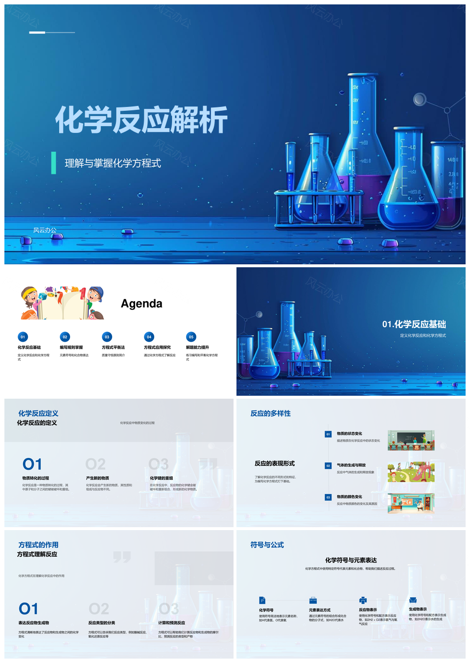 风云办公提供的化学反应解析方程式平衡守恒机制PPT模板,下载格式为pptx,一共33页,作品中文字及图均可以修改和编辑,图片更改请在作品中右键图片并更换,文字修改请直接点击文字进行修改。