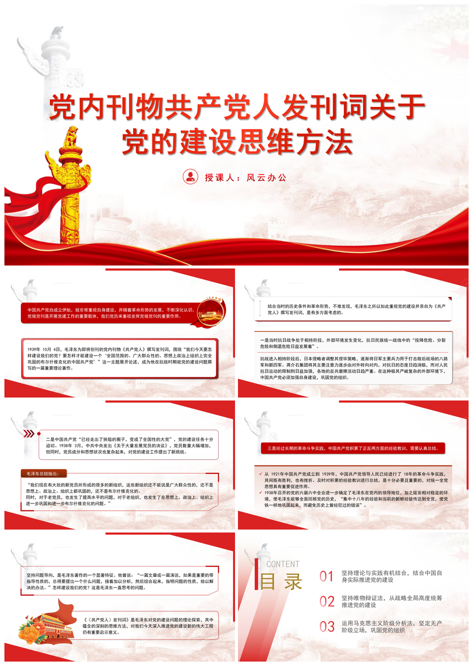 党内刊物共产党人发刊词党的建设思维方法党课PPT模板推荐