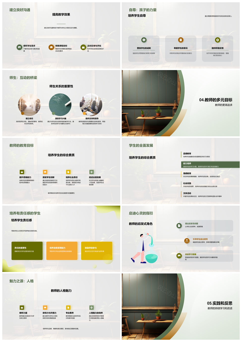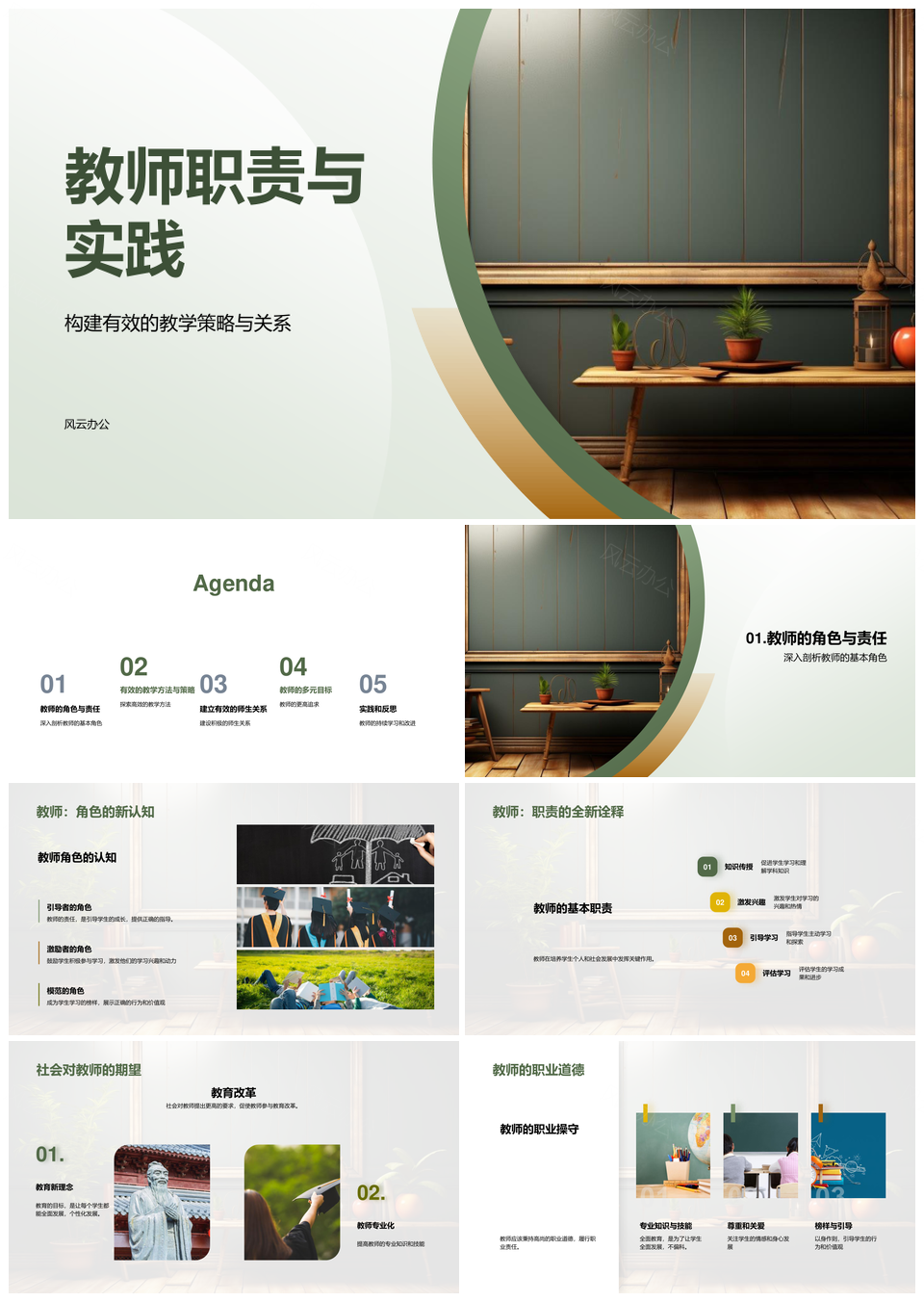 风云办公提供的教师职责策略与师生多元发展实践PPT模板,下载格式为pptx,一共33页,作品中文字及图均可以修改和编辑,图片更改请在作品中右键图片并更换,文字修改请直接点击文字进行修改。
