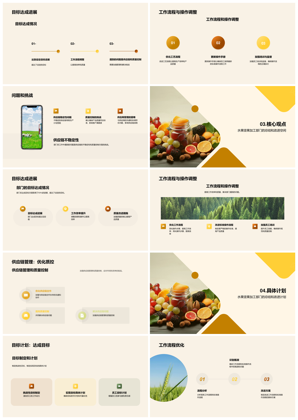 这是一张水果坚果加工部门工作进展总结汇报PPT模板,包含水果、坚果、加工部门、工作、进展、总结、汇报等主题内容,也可用作水果坚果加工部门工作进展总结汇报、水果坚果加工部门工作进展、加工部门工作进展总结、部门工作进展总结汇报、水果坚果加工部门、坚果加工部门工作进展、加工部门工作进展总结汇报、部门工作进展总结、工作进展总结汇报、水果坚果加工、坚果加工部门工作、加工部门工作进展、部门工作进展总结、工作进展总结、总结汇报等PPT场景使用。
