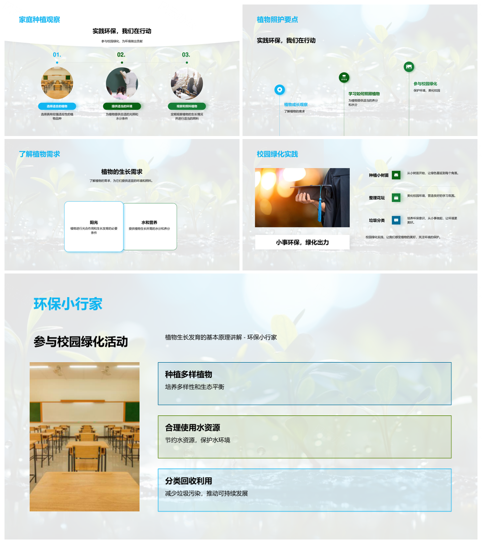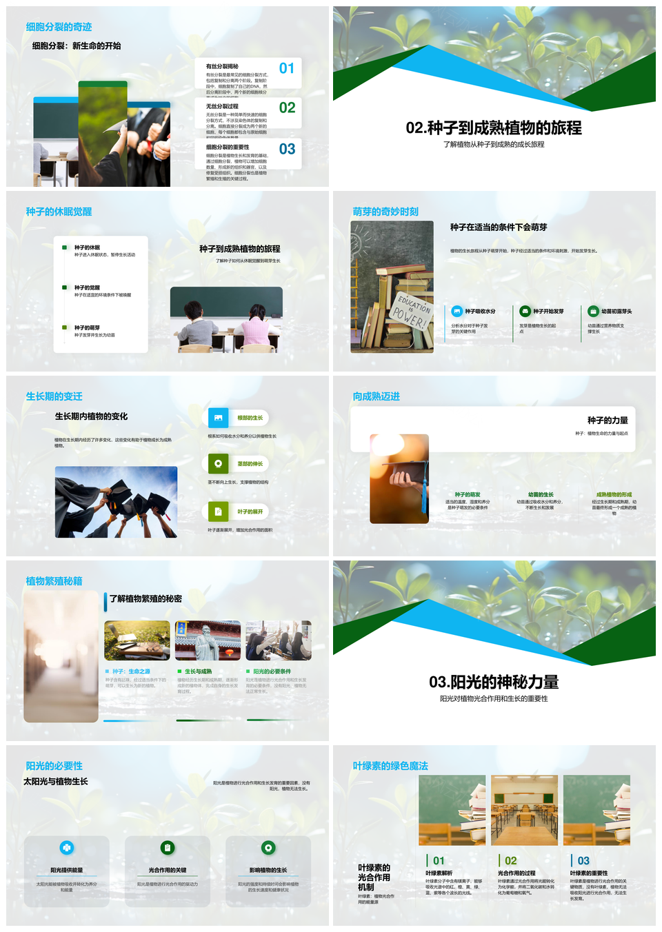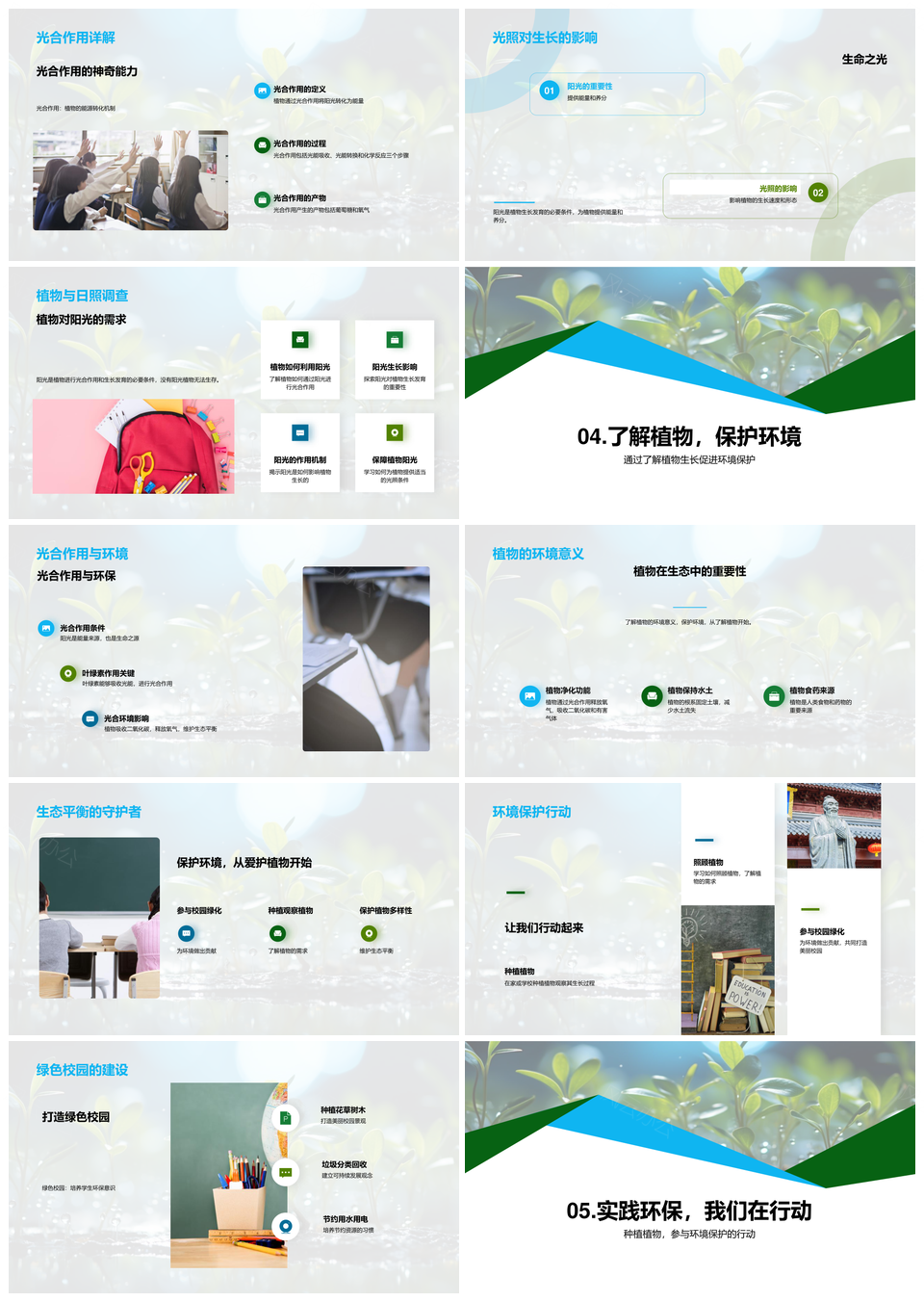 这是一张植物细胞光合作用叶绿素阳光环保绿化成长PPT模板,包含植物细胞、光合作用、叶绿素、阳光、环保、绿化、成长等主题内容,也可用作光合作用叶绿素阳光环保、植物细胞光合作用叶绿素、叶绿素阳光环保绿化、阳光环保绿化成长、植物细胞光合作用、光合作用叶绿素阳光、叶绿素阳光环保、阳光环保绿化、环保绿化成长、细胞光合作用叶绿素、光合作用阳光环保、植物细胞、光合作用叶绿素、叶绿素阳光、阳光环保、环保绿化、绿化成长等PPT场景使用。 风云办公提供的植物细胞光合作用叶绿素阳光环保绿化成长PPT模板,下载格式为pptx,一共33页,作品中文字及图均可以修改和编辑,图片更改请在作品中右键图片并更换,文字修改请直接点击文字进行修改。