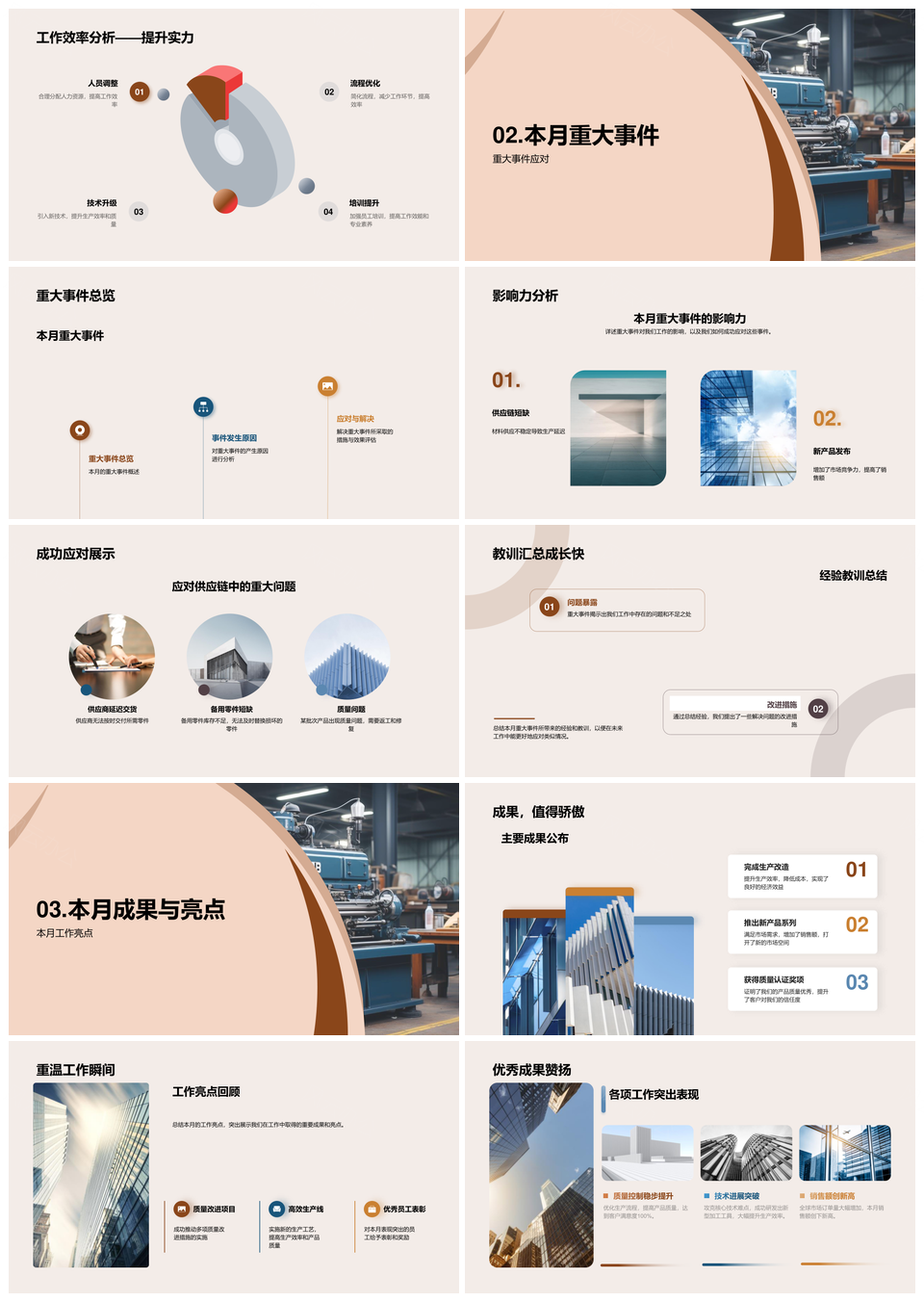 工业机械月度生产质控流程关键事件总结PPT模板推荐
