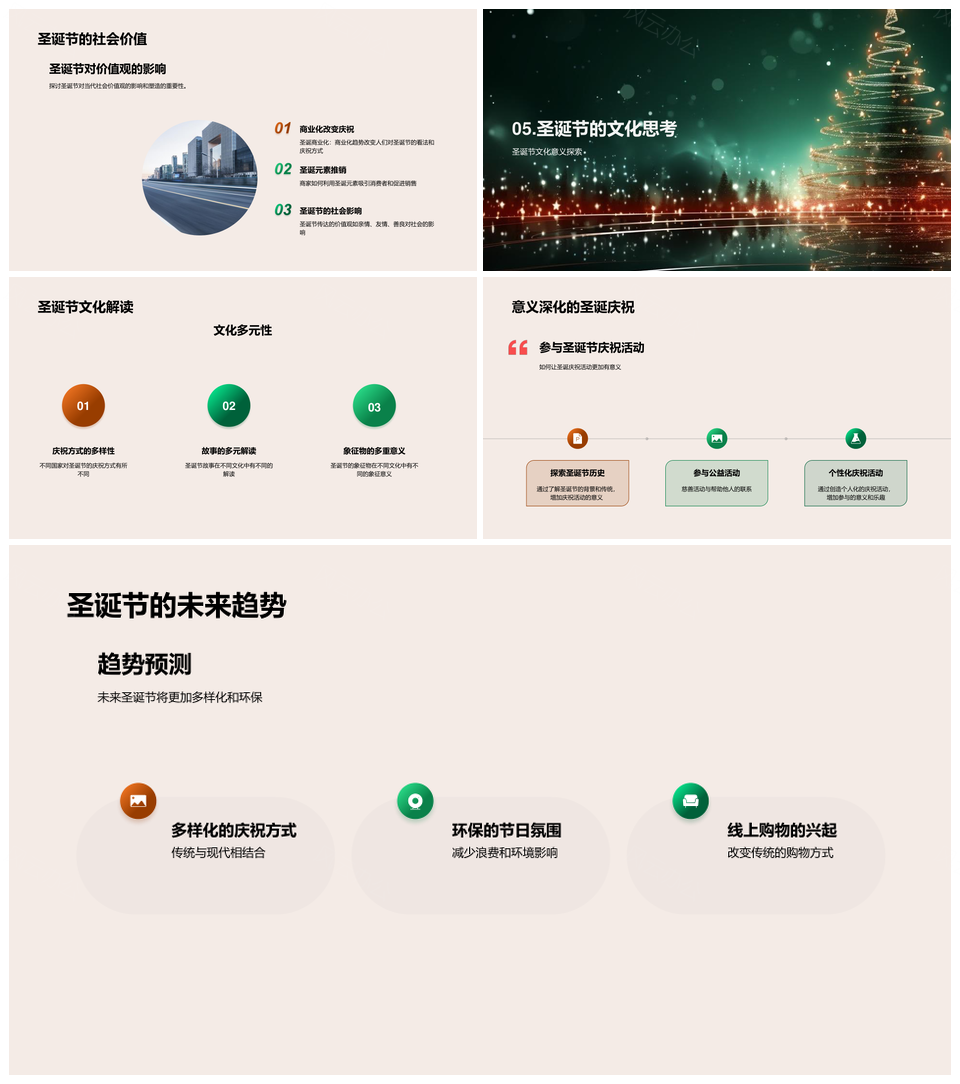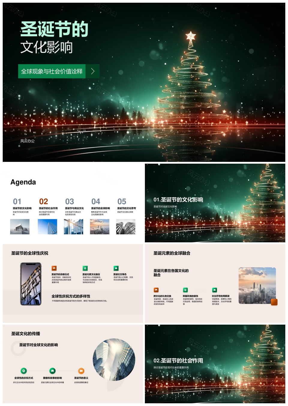 风云办公提供的圣诞节全球文化融合与社会价值PPT模板,下载格式为pptx,一共23页,作品中文字及图均可以修改和编辑,图片更改请在作品中右键图片并更换,文字修改请直接点击文字进行修改。