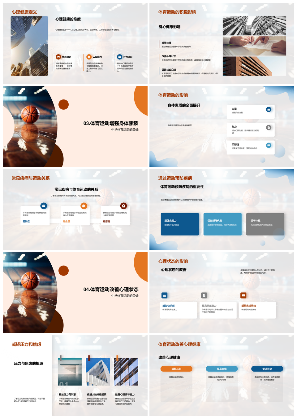 这是一张中学生体育运动强身健心防常见疾病PPT模板,包含中学生、体育运动、强身健心、常见疾病等主题内容,也可用作中学生体育运动强身健心、体育运动强身健心防、强身健心防常见疾病、中学生体育运动防、体育运动防常见疾病、强身健心防、健心防常见疾病、中学生体育运动、体育运动强身、强身健心、健心防、防常见疾病、中学生强身、中学生健心、中学生防常见疾病等PPT场景使用。