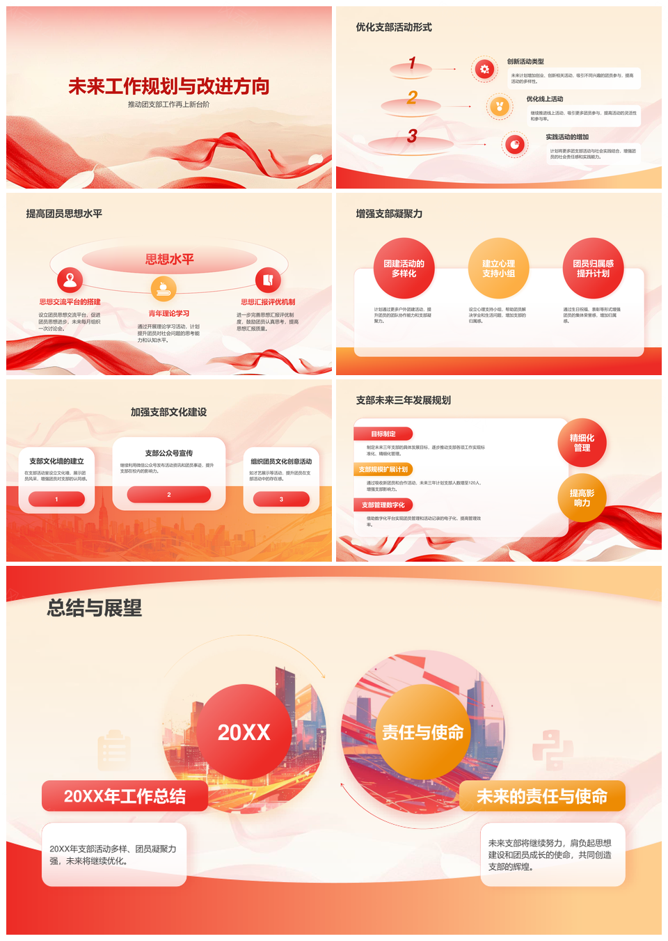 团支书述职支部建设与团队发展总结汇报PPT模板推荐