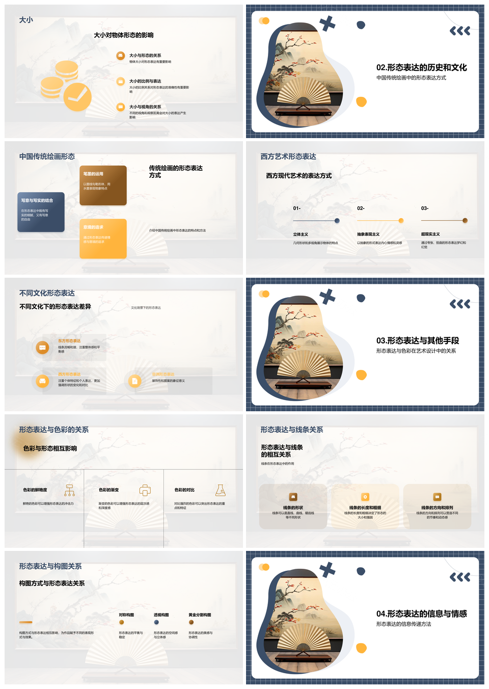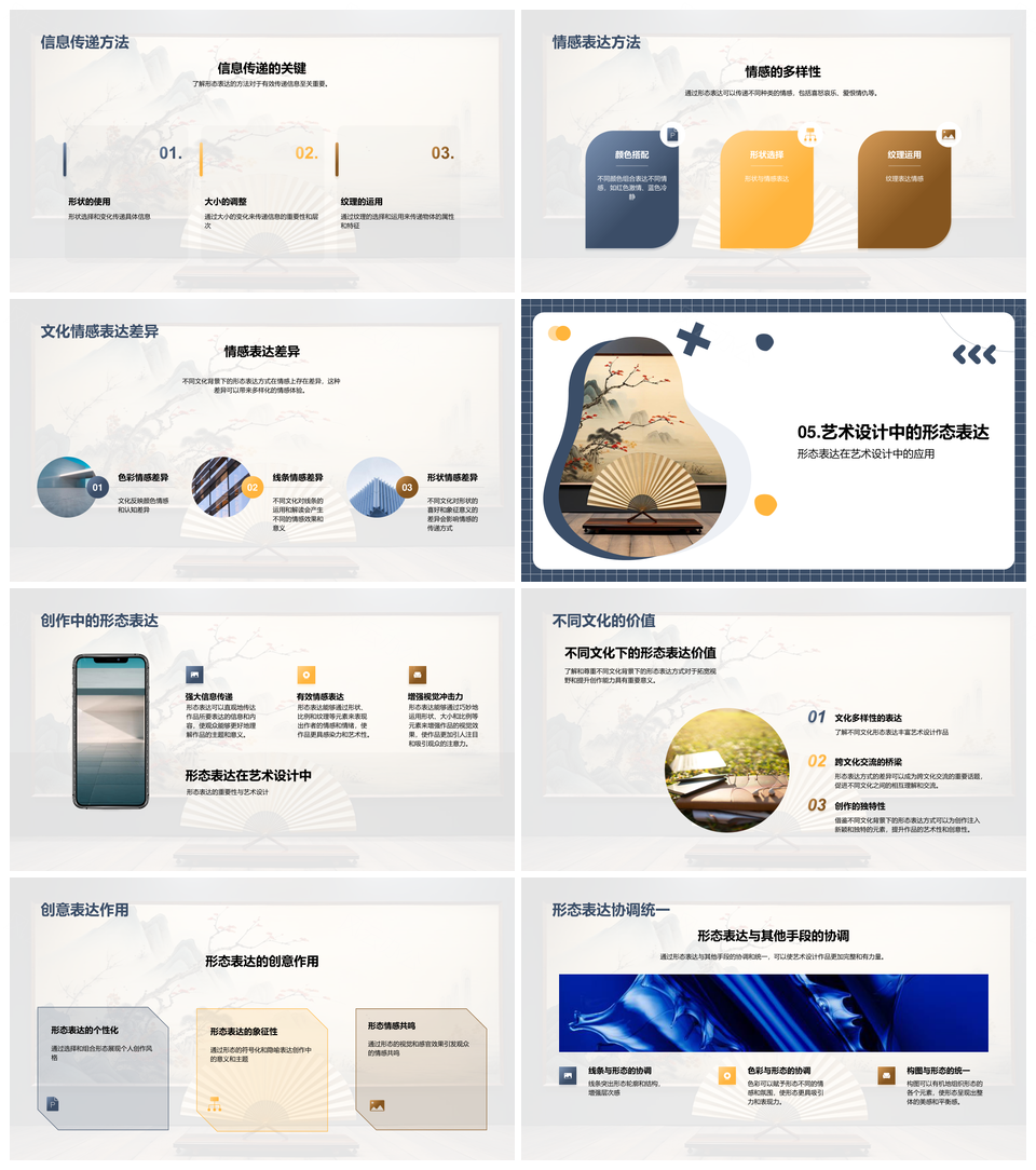 风云办公提供的中西艺术设计形态形制纹理表达PPT模板,下载格式为pptx,一共26页,作品中文字及图均可以修改和编辑,图片更改请在作品中右键图片并更换,文字修改请直接点击文字进行修改。