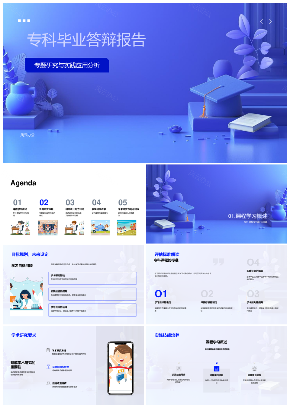 专科毕业答辩课程目标研究数据分析实践学术影响PPT模板推荐