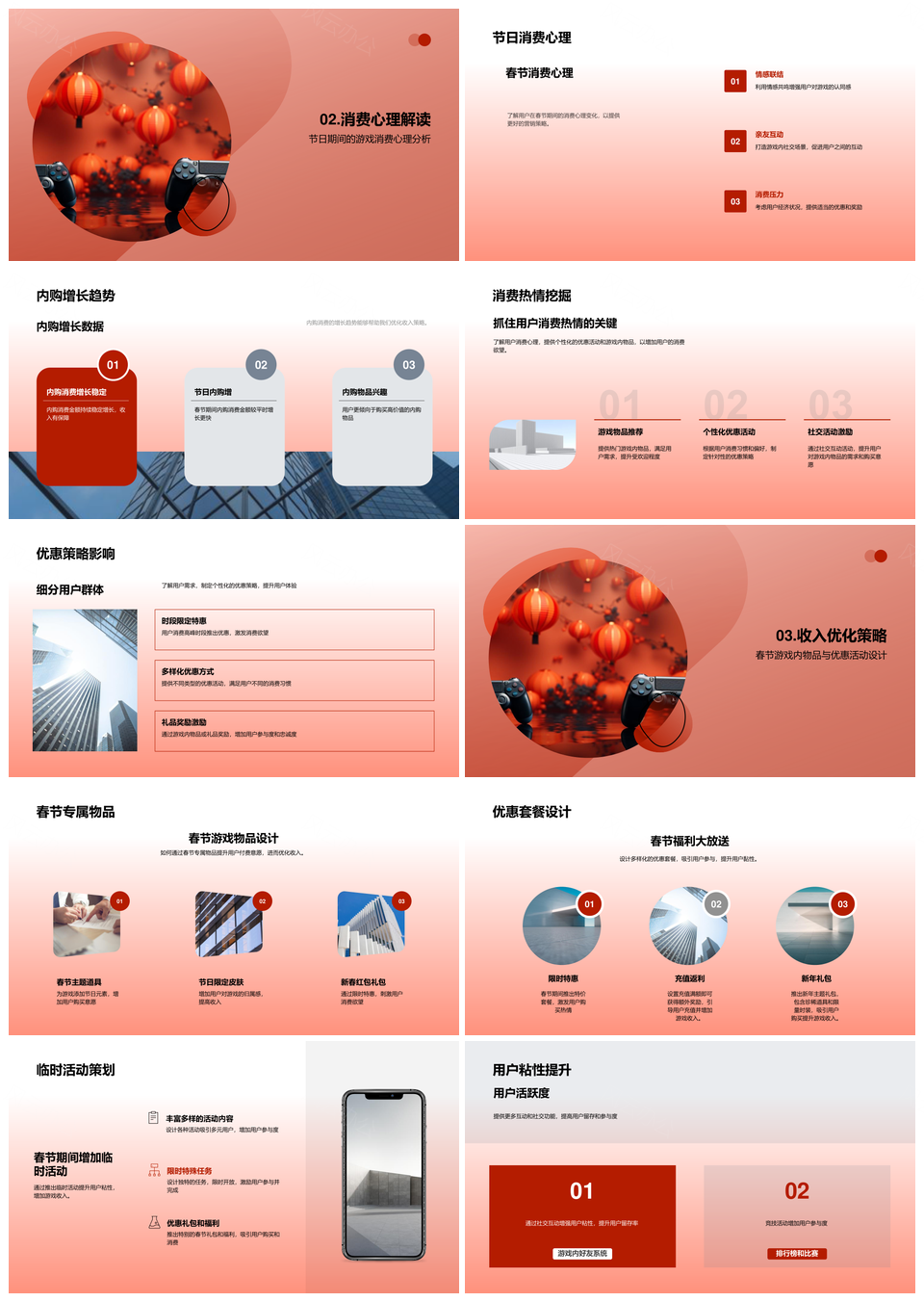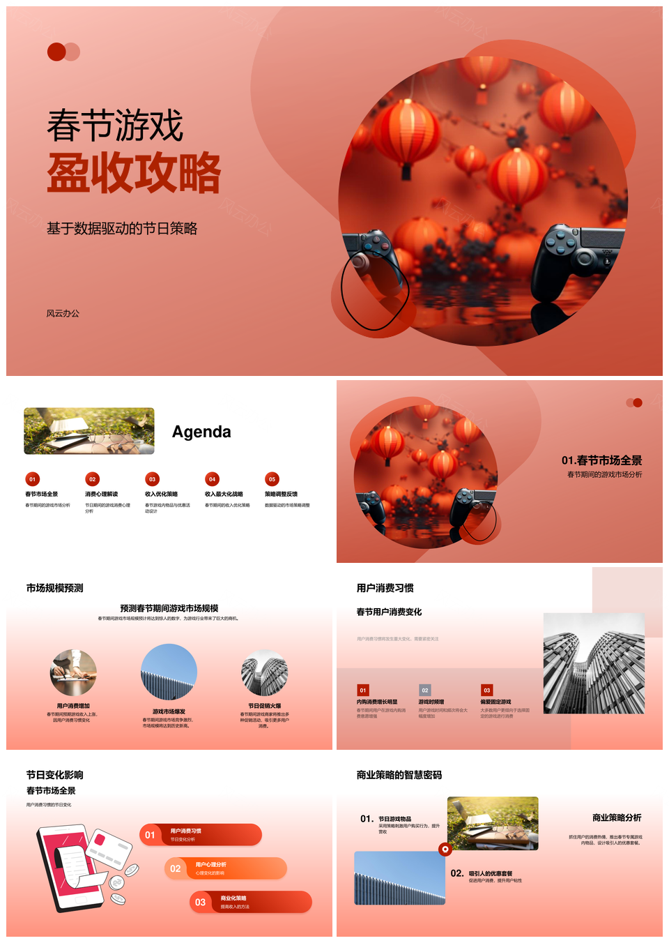 风云办公提供的春节游戏数据驱动节日盈收策略PPT模板,下载格式为pptx,一共28页,作品中文字及图均可以修改和编辑,图片更改请在作品中右键图片并更换,文字修改请直接点击文字进行修改。