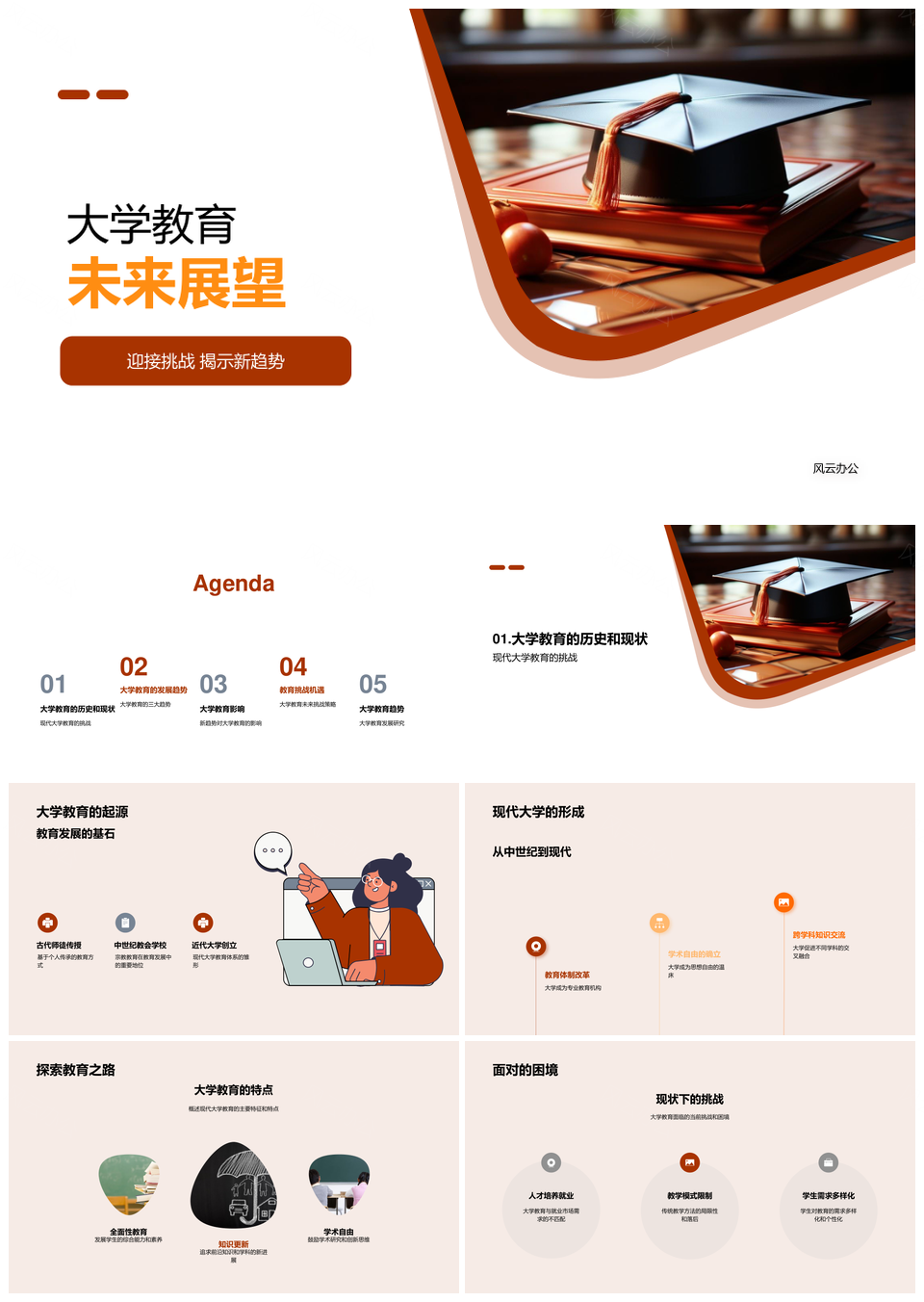 2025未来大学教育网络化个性多元趋势与挑战PPT模板推荐