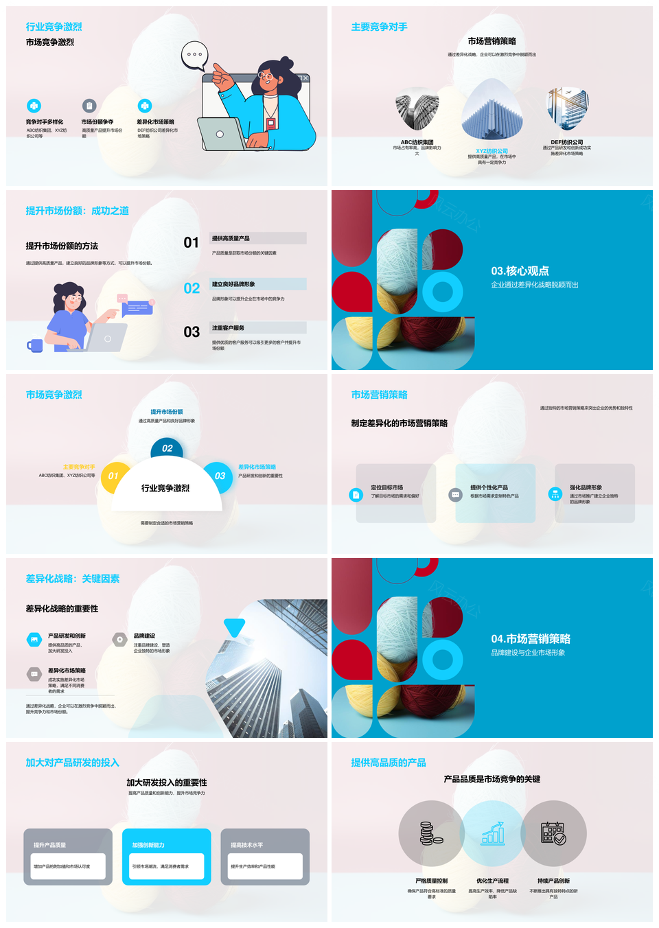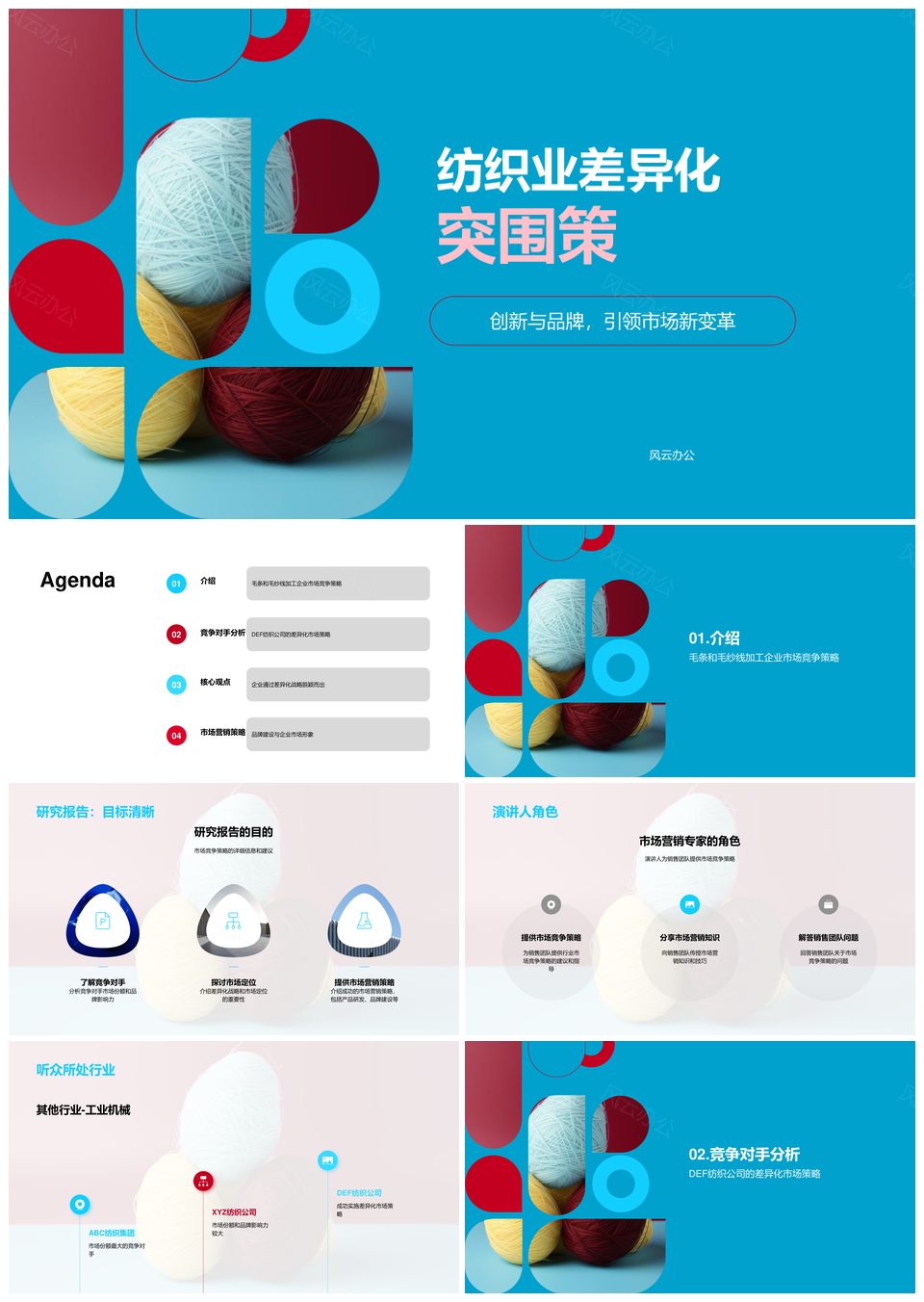 风云办公提供的毛条毛纱线创新差异化竞争突围策略PPT模板,下载格式为pptx,一共19页,作品中文字及图均可以修改和编辑,图片更改请在作品中右键图片并更换,文字修改请直接点击文字进行修改。