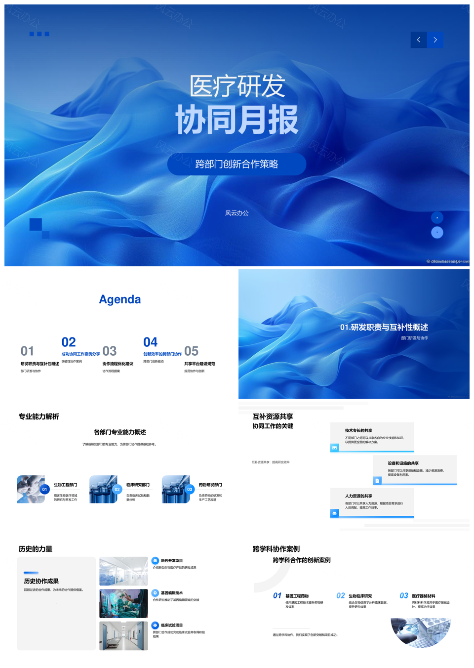 风云办公提供的医疗研发协同跨学科协作流程优化月报PPT模板,下载格式为pptx,一共28页,作品中文字及图均可以修改和编辑,图片更改请在作品中右键图片并更换,文字修改请直接点击文字进行修改。