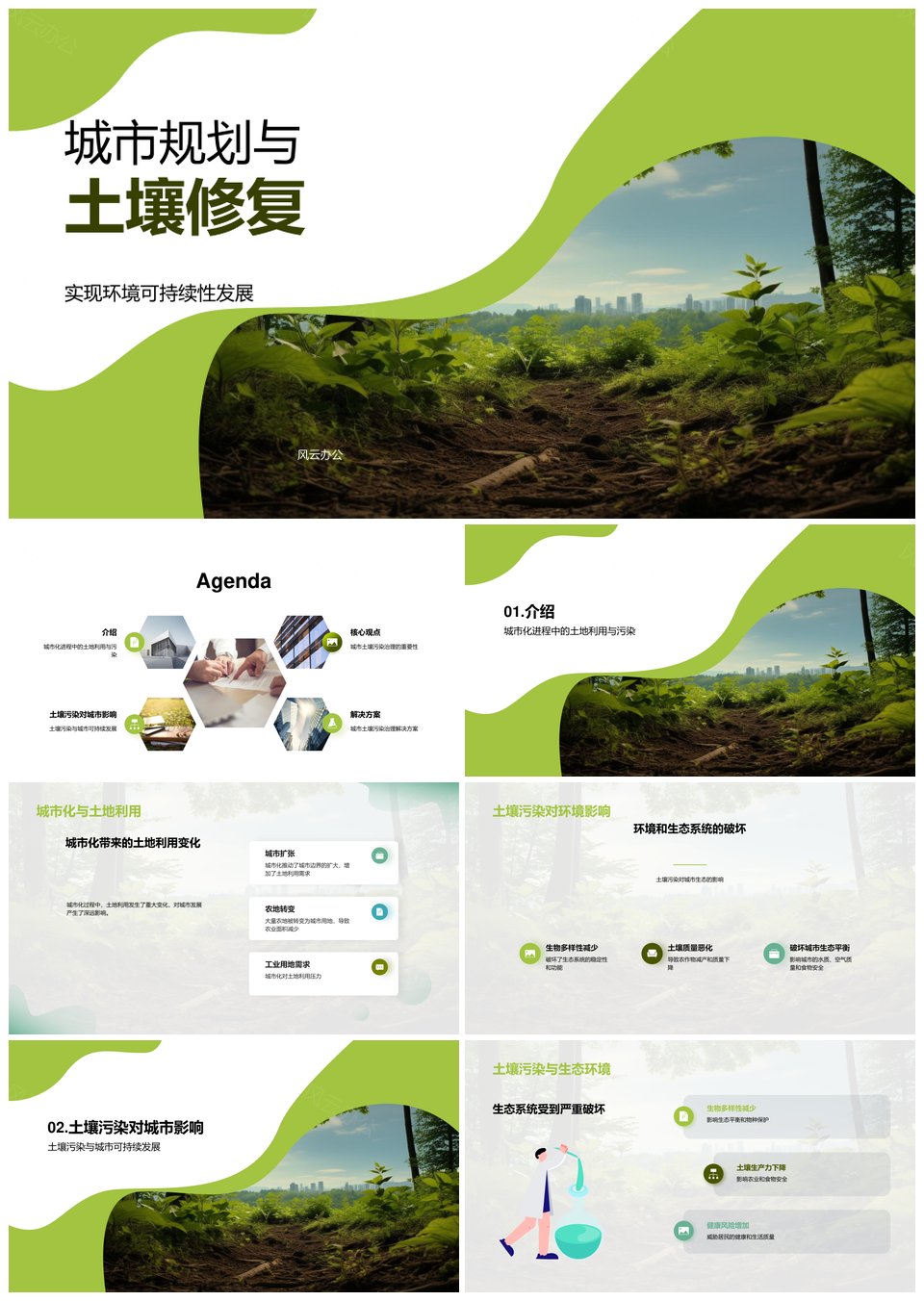 风云办公提供的城市土壤修复与可持续生态规划PPT模板,下载格式为pptx,一共22页,作品中文字及图均可以修改和编辑,图片更改请在作品中右键图片并更换,文字修改请直接点击文字进行修改。