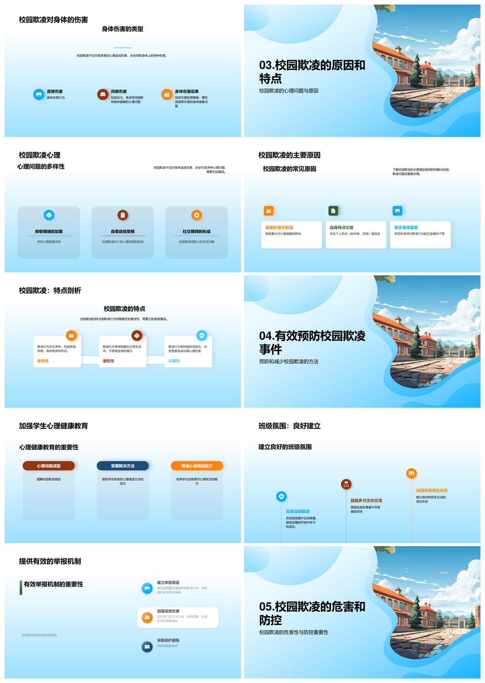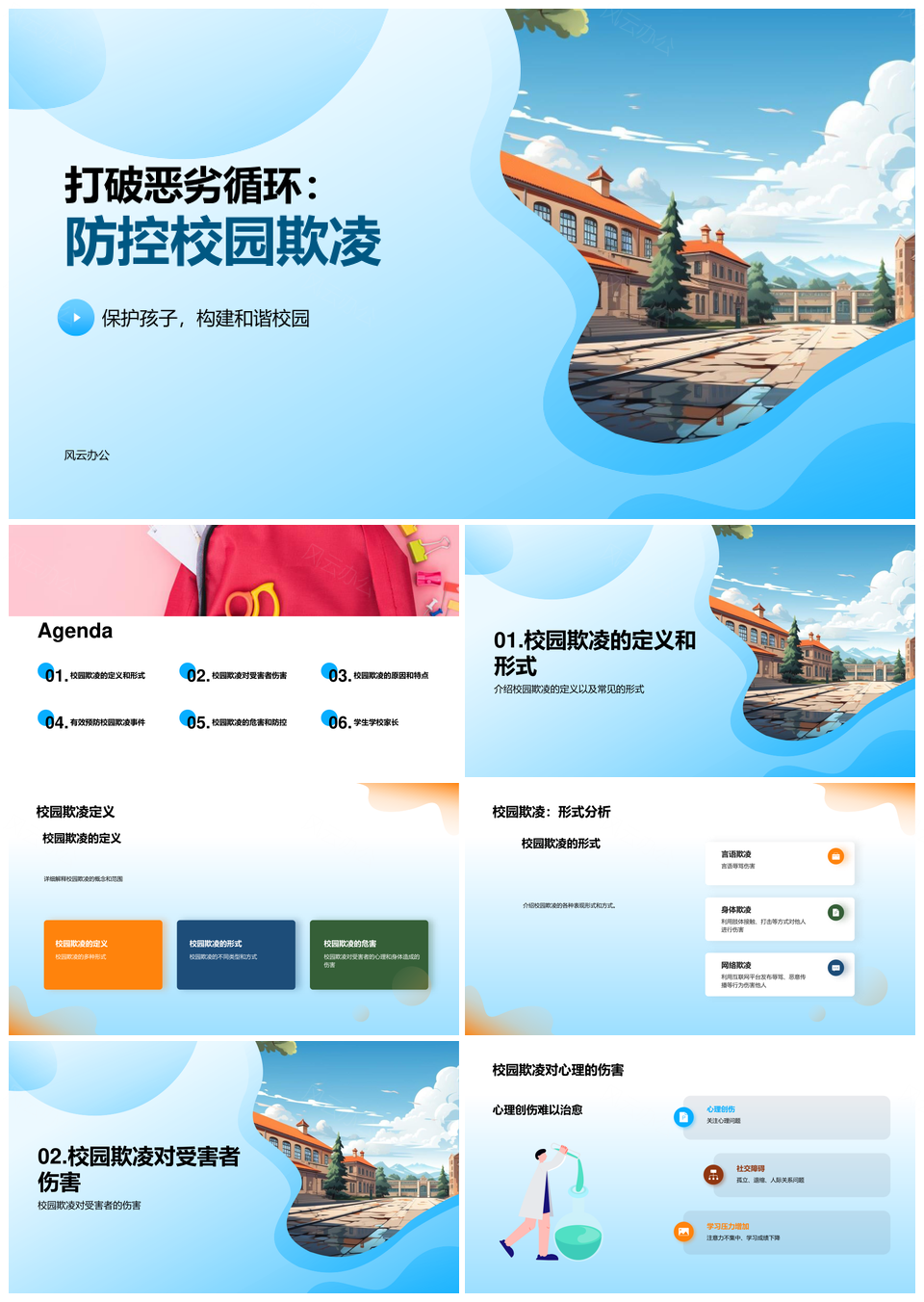 风云办公提供的中学生校园欺凌危害防控心理辅导PPT模板,下载格式为pptx,一共25页,作品中文字及图均可以修改和编辑,图片更改请在作品中右键图片并更换,文字修改请直接点击文字进行修改。