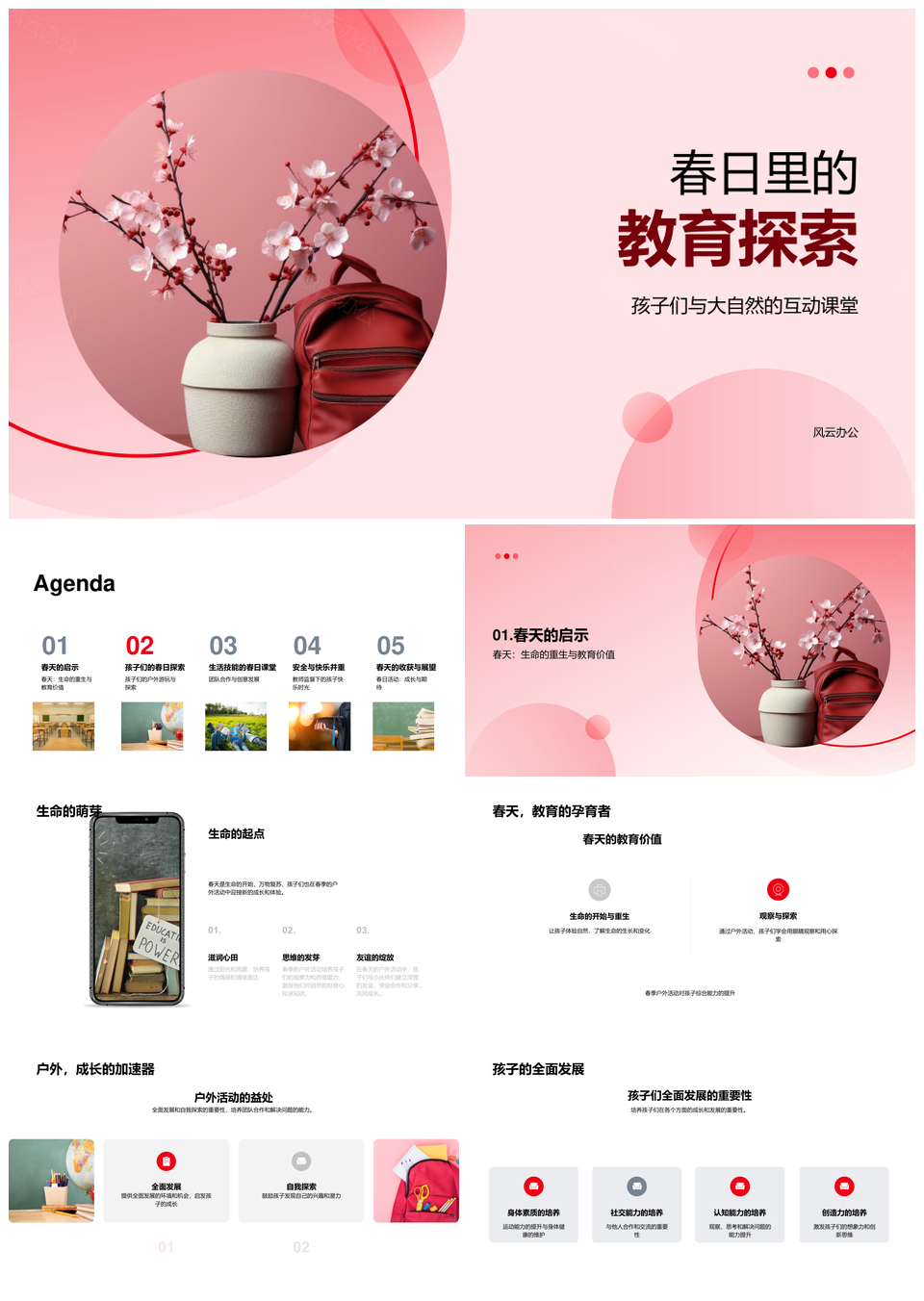风云办公提供的春日樱花户外课堂探索儿童成长PPT模板,下载格式为pptx,一共33页,作品中文字及图均可以修改和编辑,图片更改请在作品中右键图片并更换,文字修改请直接点击文字进行修改。