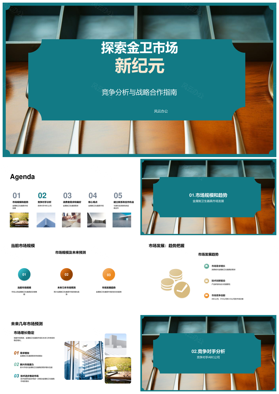 风云办公提供的金属卫具市场分析融资趋势未来预测PPT模板,下载格式为pptx,一共23页,作品中文字及图均可以修改和编辑,图片更改请在作品中右键图片并更换,文字修改请直接点击文字进行修改。