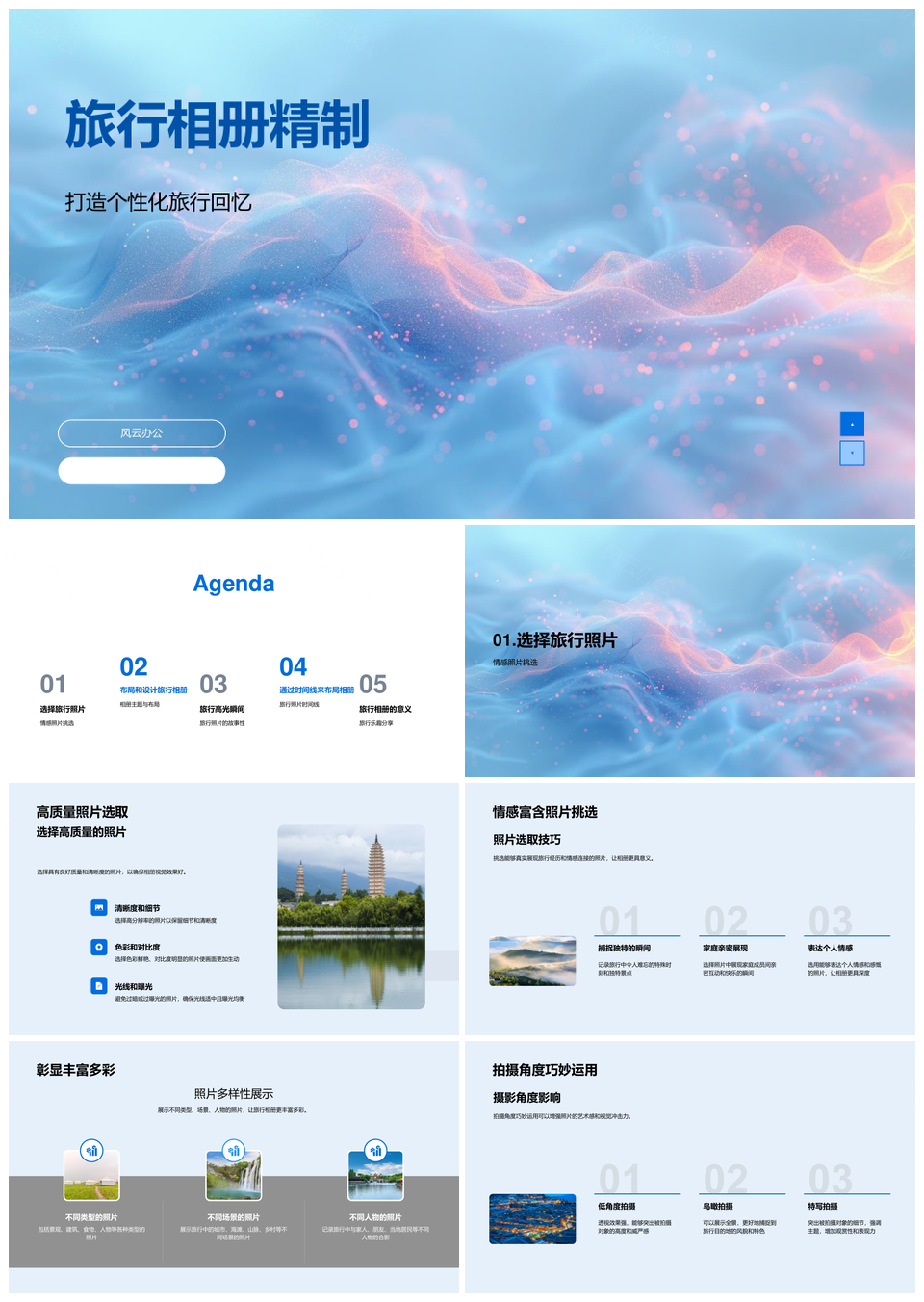 风云办公提供的旅行高光回忆个性化精选相册PPT模板,下载格式为pptx,一共33页,作品中文字及图均可以修改和编辑,图片更改请在作品中右键图片并更换,文字修改请直接点击文字进行修改。