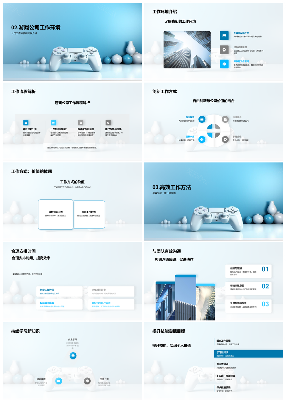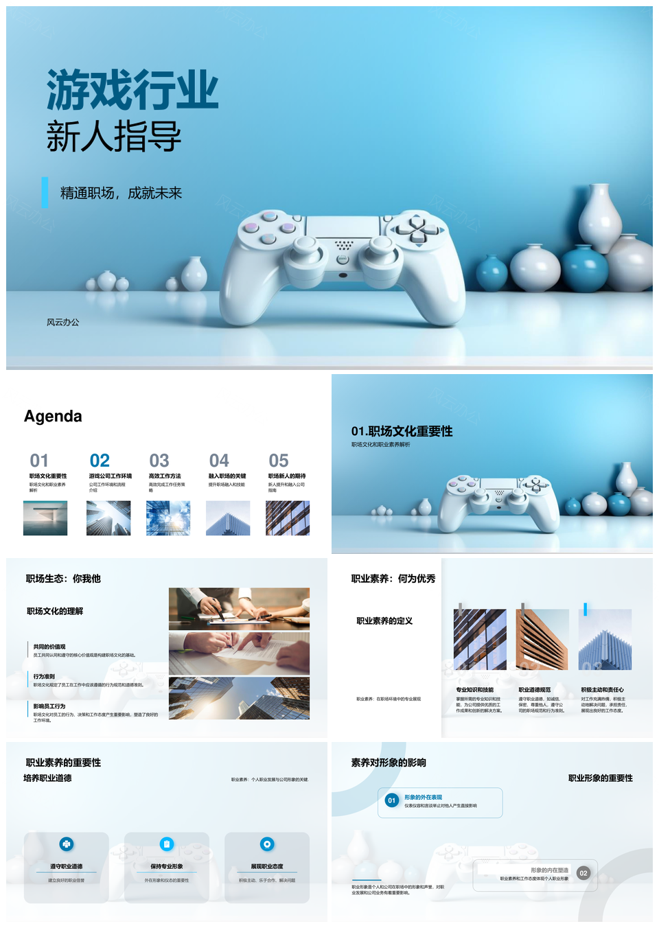 风云办公提供的游戏新人职场素养创新协作流程指导PPT模板,下载格式为pptx,一共28页,作品中文字及图均可以修改和编辑,图片更改请在作品中右键图片并更换,文字修改请直接点击文字进行修改。