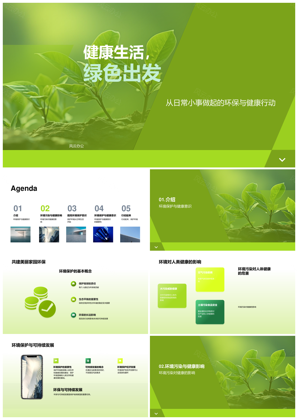 风云办公提供的大学生环保周倡健康绿意持续发展PPT模板,下载格式为pptx,一共23页,作品中文字及图均可以修改和编辑,图片更改请在作品中右键图片并更换,文字修改请直接点击文字进行修改。