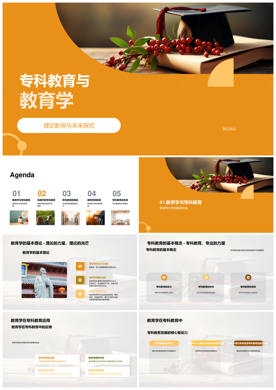 风云办公提供的专科教育学理论应用与未来探究PPT模板,下载格式为pptx,一共33页,作品中文字及图均可以修改和编辑,图片更改请在作品中右键图片并更换,文字修改请直接点击文字进行修改。