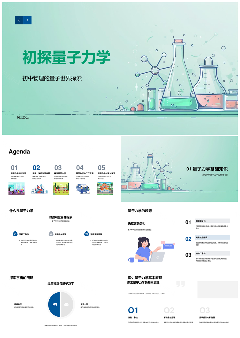 这是一张初中物理量子力学教学基础应用通信计算机双缝PPT模板,包含初中物理、量子力学、教学基础、应用、通信、计算机、双缝等主题内容,也可用作初中物理量子力学教学基础、量子力学教学基础应用、教学基础应用通信、基础应用通信计算机、应用通信计算机双缝、初中物理教学基础应用、量子力学基础应用通信、教学应用通信计算机、基础通信计算机双缝、初中物理量子力学教学、量子力学教学应用通信、初中物理教学应用通信、基础应用计算机双缝、量子力学通信计算机双缝、初中物理基础应用通信等PPT场景使用。 风云办公提供的初中物理量子力学教学基础应用通信计算机双缝PPT模板,下载格式为pptx,一共32页,作品中文字及图均可以修改和编辑,图片更改请在作品中右键图片并更换,文字修改请直接点击文字进行修改。