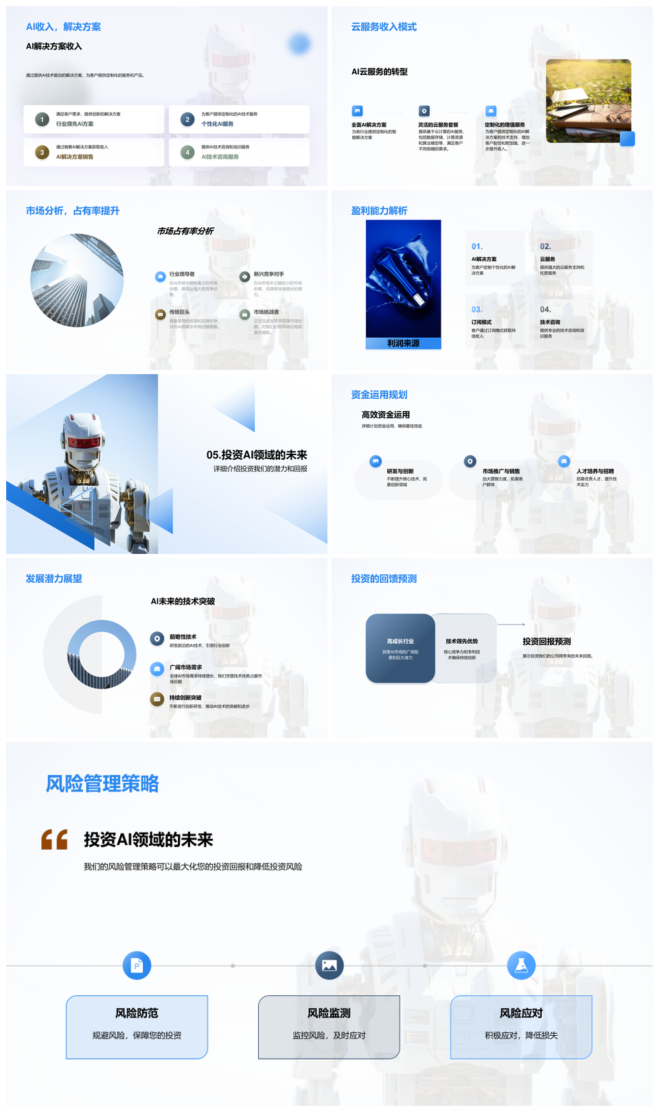 这是一张AI技术融资市场前景投资回报全球趋势专利机器人规划PPT模板,包含AI技术、融资市场、前景、投资回报、全球趋势、专利、机器人、规划等主题内容,也可用作AI技术融资市场前景投资回报、融资市场前景投资回报全球趋势、市场前景投资回报全球趋势专利、投资回报全球趋势专利机器人、全球趋势专利机器人规划、AI技术融资市场前景、融资市场前景投资回报、市场前景投资回报全球、投资回报全球趋势专利、全球趋势专利机器人、专利机器人规划、AI技术融资市场、技术融资市场前景、融资市场前景、市场前景投资、前景投资回报、投资回报全球、全球趋势专利、专利机器人、机器人规划等PPT场景使用。 风云办公提供的AI技术融资市场前景投资回报全球趋势专利机器人规划PPT模板,下载格式为pptx,一共27页,作品中文字及图均可以修改和编辑,图片更改请在作品中右键图片并更换,文字修改请直接点击文字进行修改。