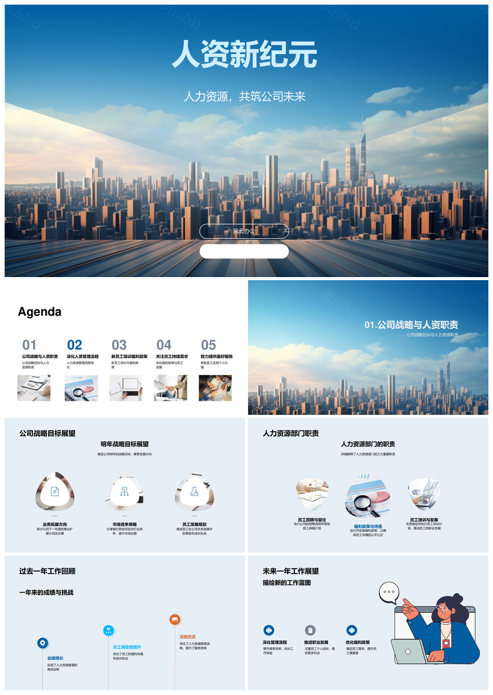 人资新纪元战略深化管理提效员工发展培训摩天大楼PPT模板推荐
