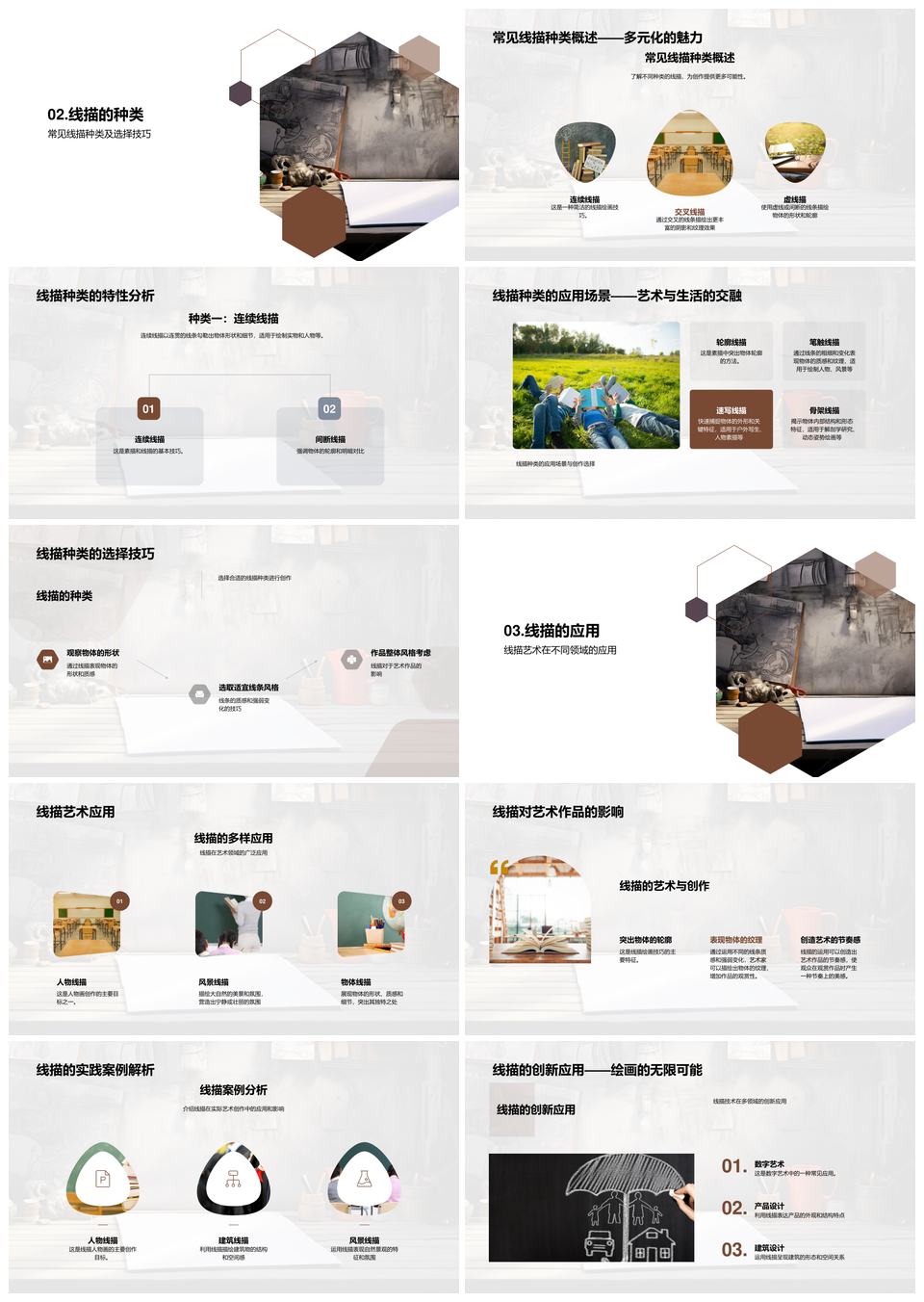 这是一张线描艺术起源种类与素描本探索PPT模板,包含线描艺术、起源、种类、素描本、探索等主题内容,也可用作线描艺术起源种类、线描艺术起源探索、线描艺术素描探索、艺术起源种类探索、线描艺术起源、线描艺术种类、线描艺术素描、线描艺术探索、艺术起源种类、艺术起源探索、艺术种类探索、素描艺术探索、线描艺术、艺术起源、素描探索等PPT场景使用。