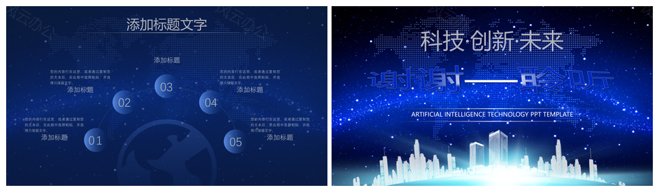 高质量蓝色人工智能科技PPT模板