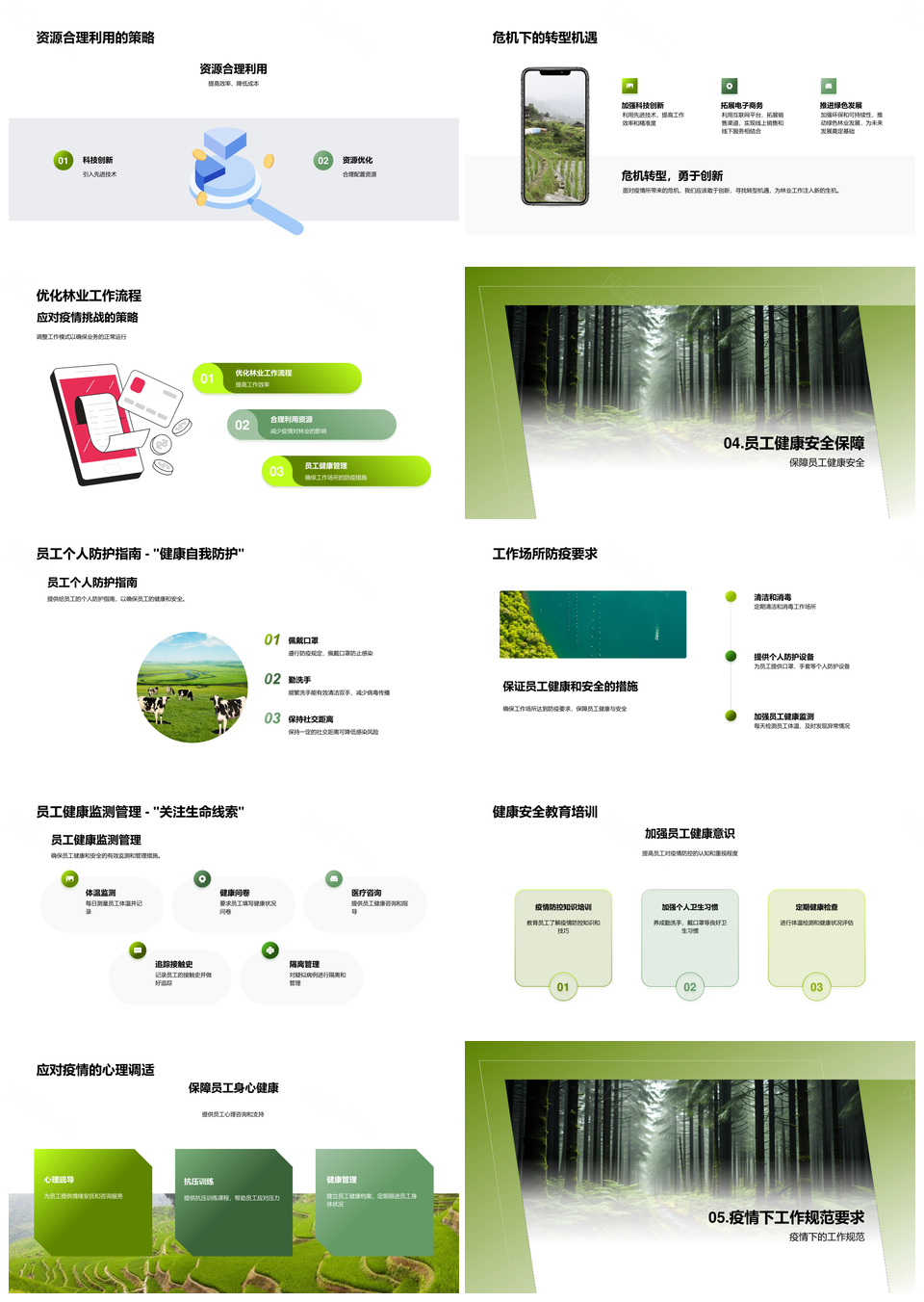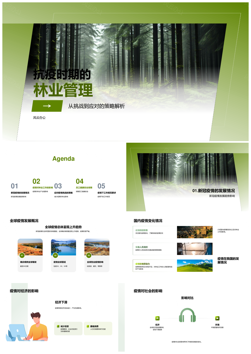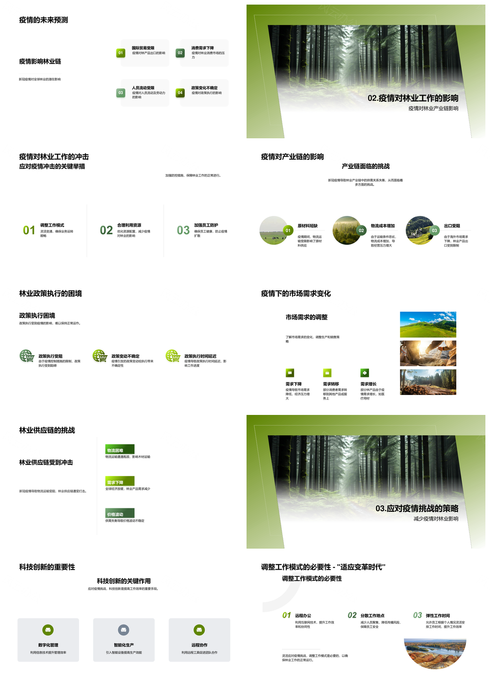 风云办公提供的抗疫林业管理科技创新与防护策略PPT模板,下载格式为pptx,一共33页,作品中文字及图均可以修改和编辑,图片更改请在作品中右键图片并更换,文字修改请直接点击文字进行修改。