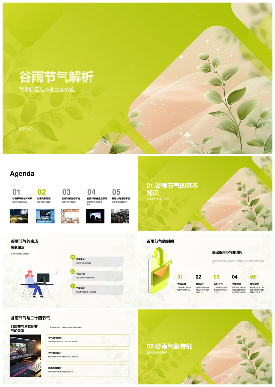 风云办公提供的谷雨节气气象特征与农业生态解析PPT模板,下载格式为pptx,一共23页,作品中文字及图均可以修改和编辑,图片更改请在作品中右键图片并更换,文字修改请直接点击文字进行修改。