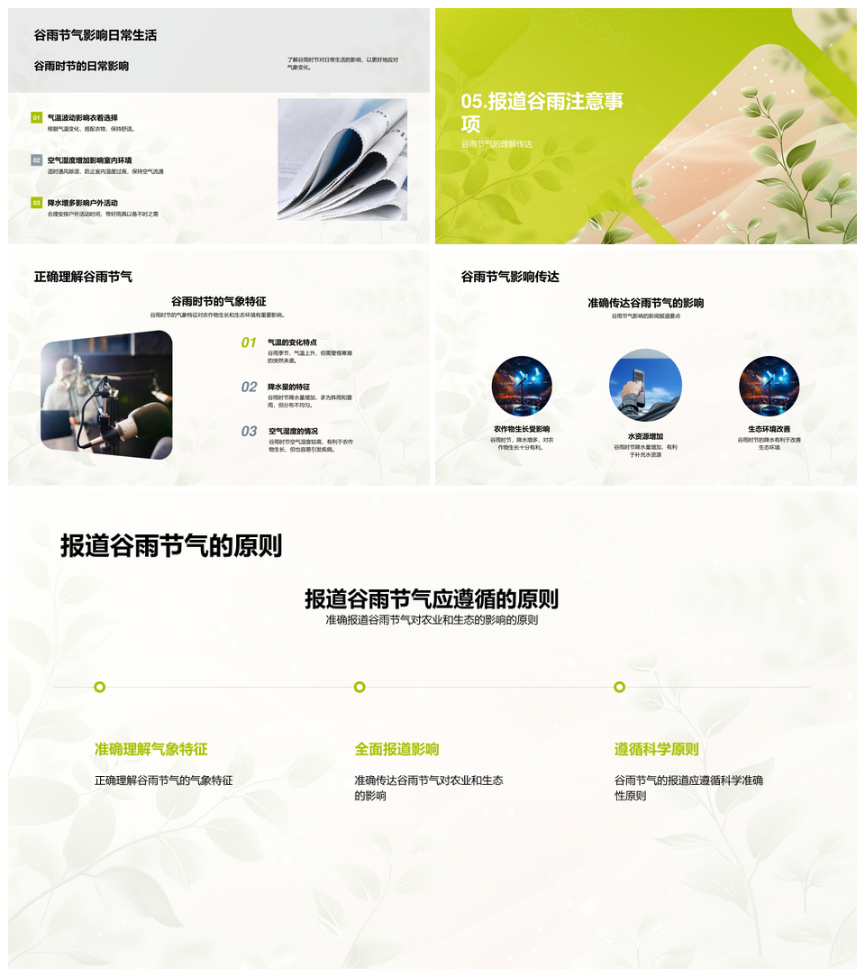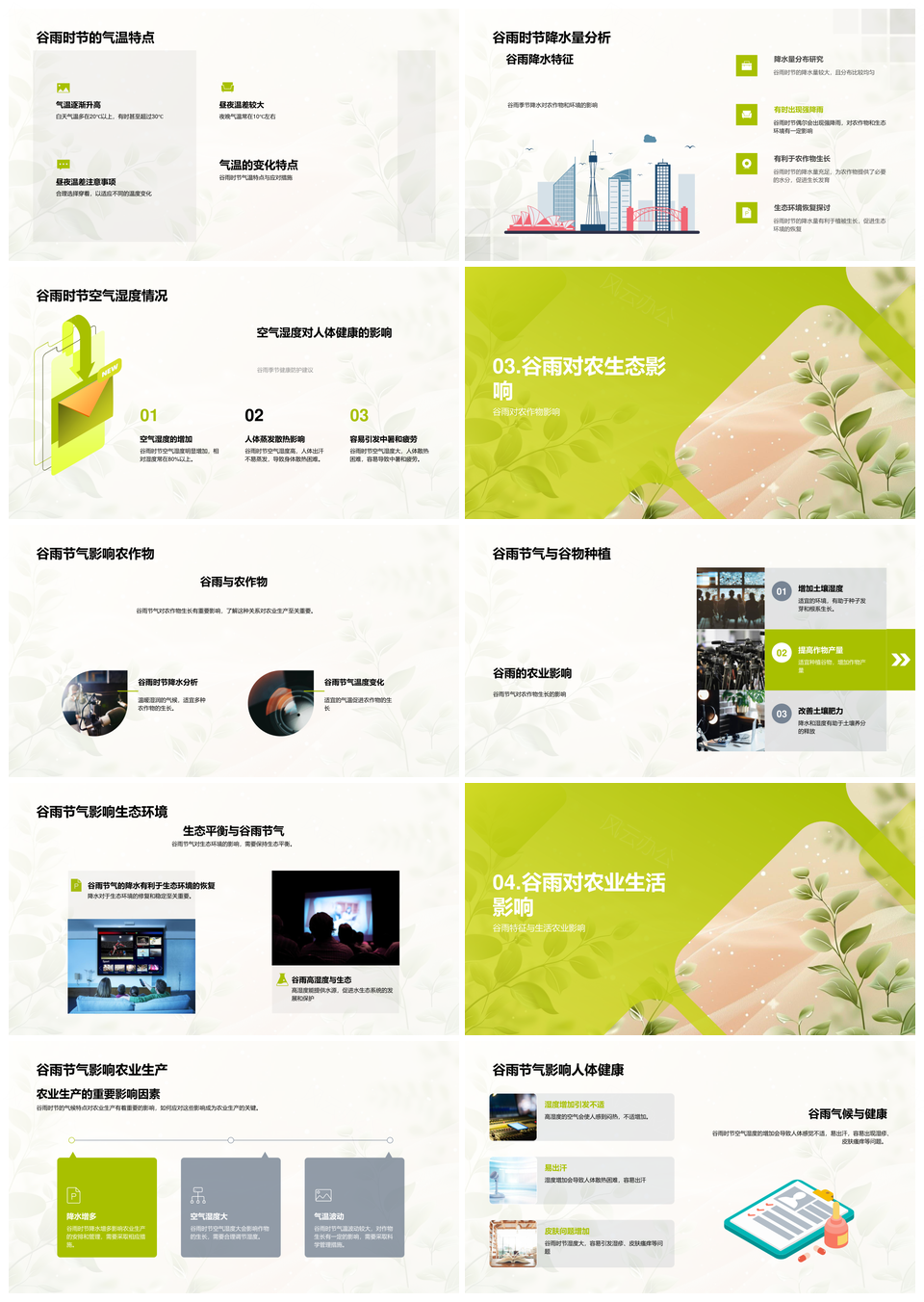 这是一张谷雨节气气象特征与农业生态解析PPT模板,包含谷雨、节气、气象特征、农业生态等主题内容,也可用作谷雨节气气象特征、谷雨节气气象、节气气象特征农业、节气气象特征、气象特征农业生态、气象特征农业、特征农业生态解析、特征农业生态、农业生态解析、谷雨节气、节气气象、气象特征、特征农业、农业生态、生态解析等PPT场景使用。
