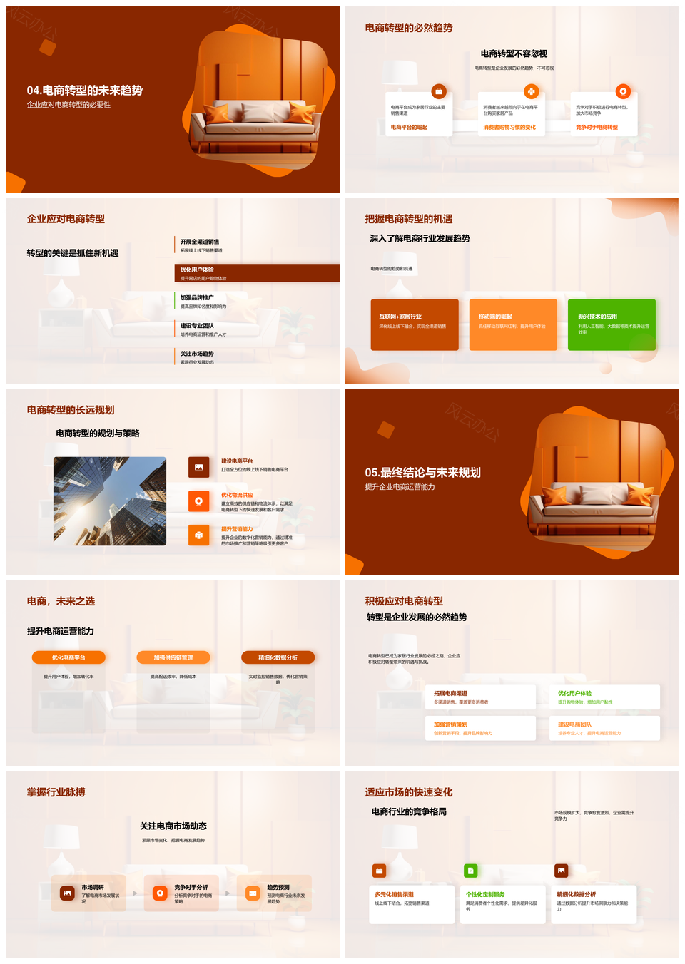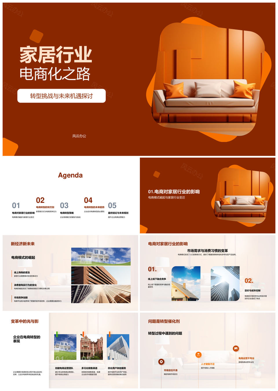风云办公提供的家居电商化转型模式营销渠道竞争市场PPT模板,下载格式为pptx,一共29页,作品中文字及图均可以修改和编辑,图片更改请在作品中右键图片并更换,文字修改请直接点击文字进行修改。