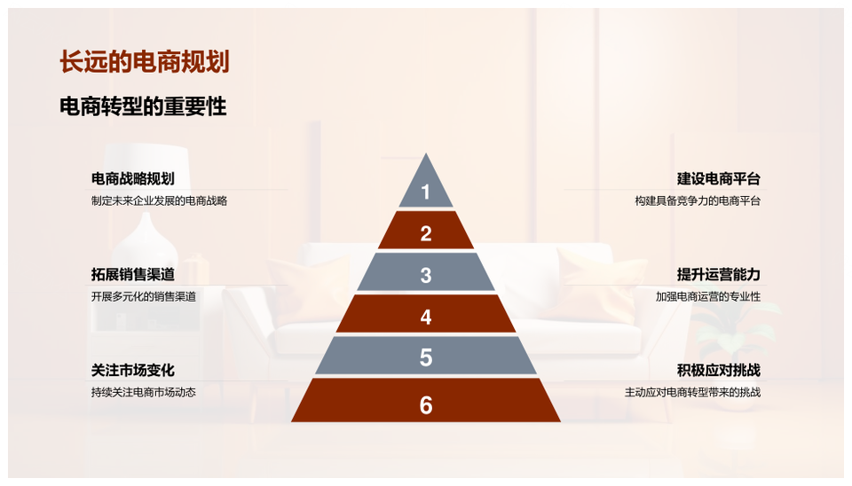 这是一张家居电商化转型模式营销渠道竞争市场PPT模板,包含家居、电商化、转型、模式、营销、渠道、竞争、市场等主题内容,也可用作家居电商化转型模式、电商化转型模式营销、转型模式营销渠道、模式营销渠道竞争、营销渠道竞争市场、家居电商化转型、电商化转型模式、转型模式营销、模式营销渠道、营销渠道竞争、渠道竞争市场、模式营销、营销渠道、渠道竞争、竞争市场等PPT场景使用。