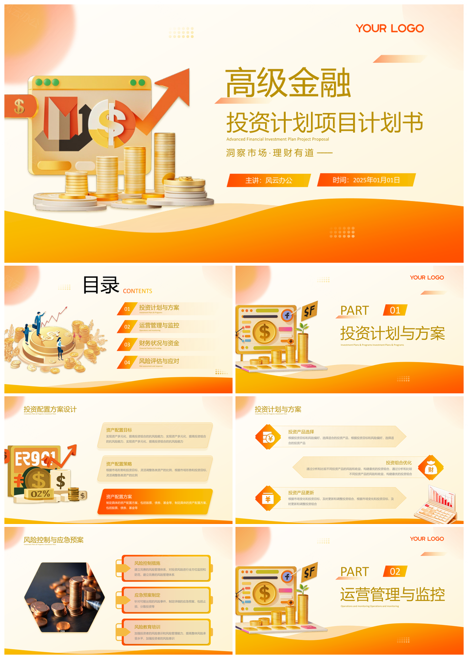 风云办公提供的2025高级金融投资计划商务计划书PPT模板,下载格式为pptx,一共19页,作品中文字及图均可以修改和编辑,图片更改请在作品中右键图片并更换,文字修改请直接点击文字进行修改。