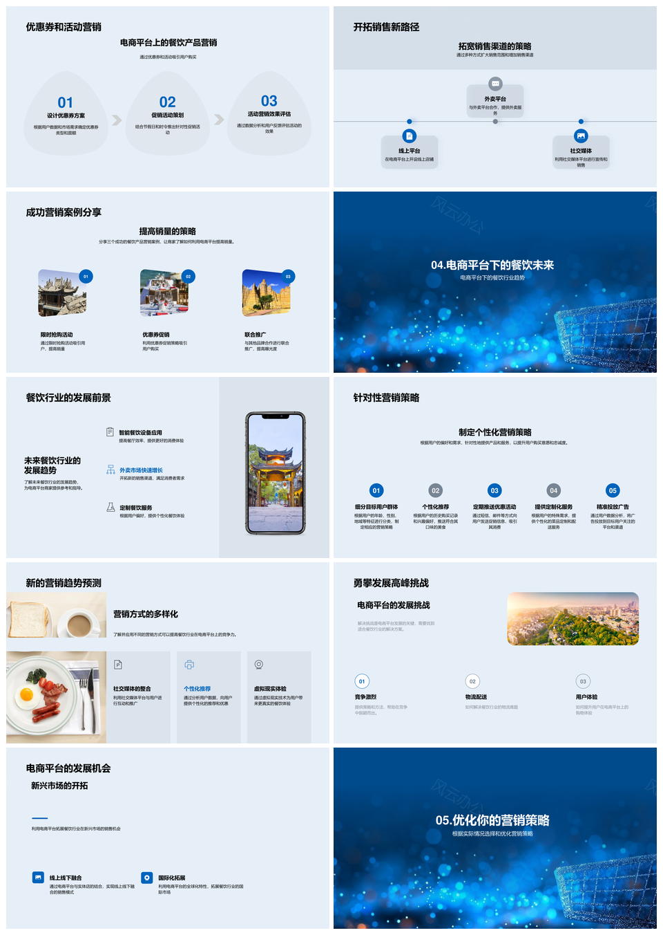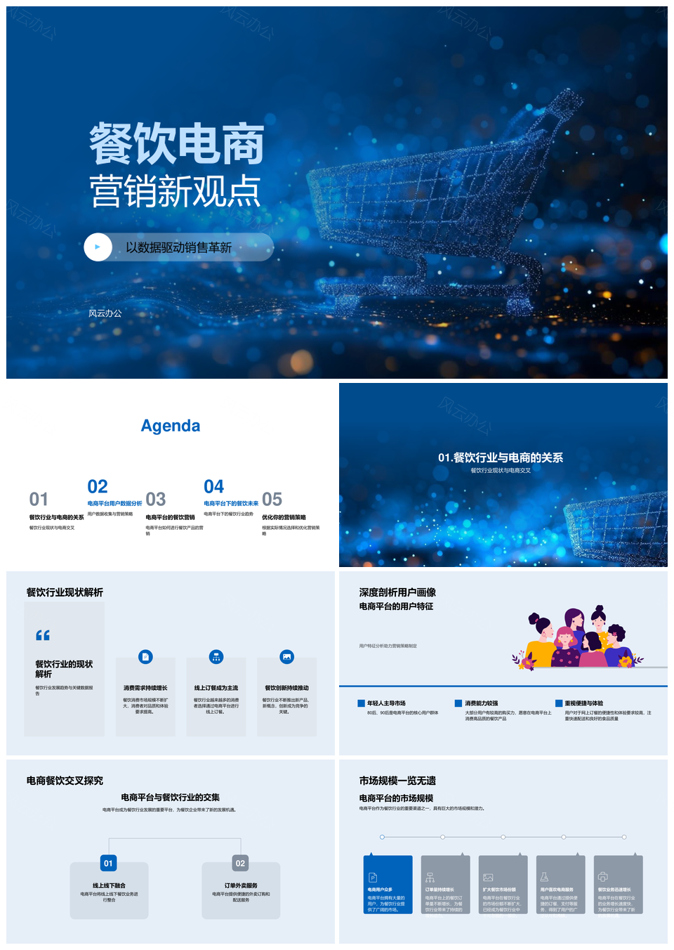 风云办公提供的餐饮电商数据驱动销售革新策略PPT模板,下载格式为pptx,一共33页,作品中文字及图均可以修改和编辑,图片更改请在作品中右键图片并更换,文字修改请直接点击文字进行修改。