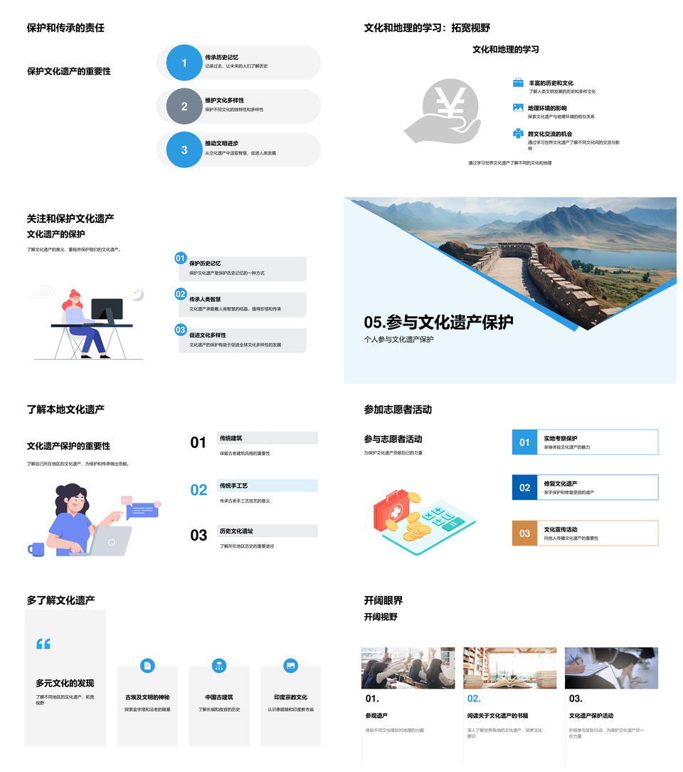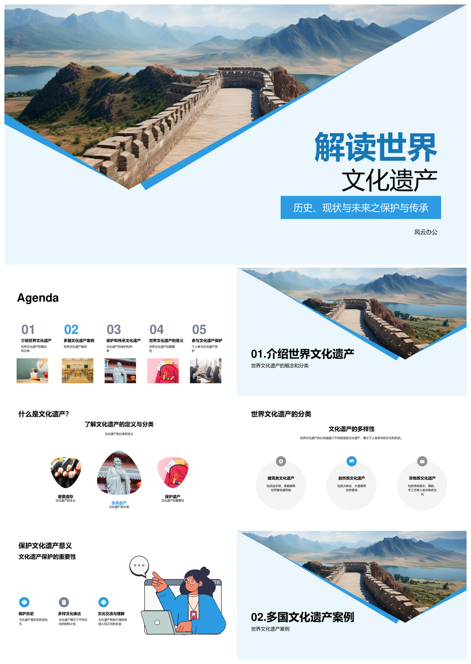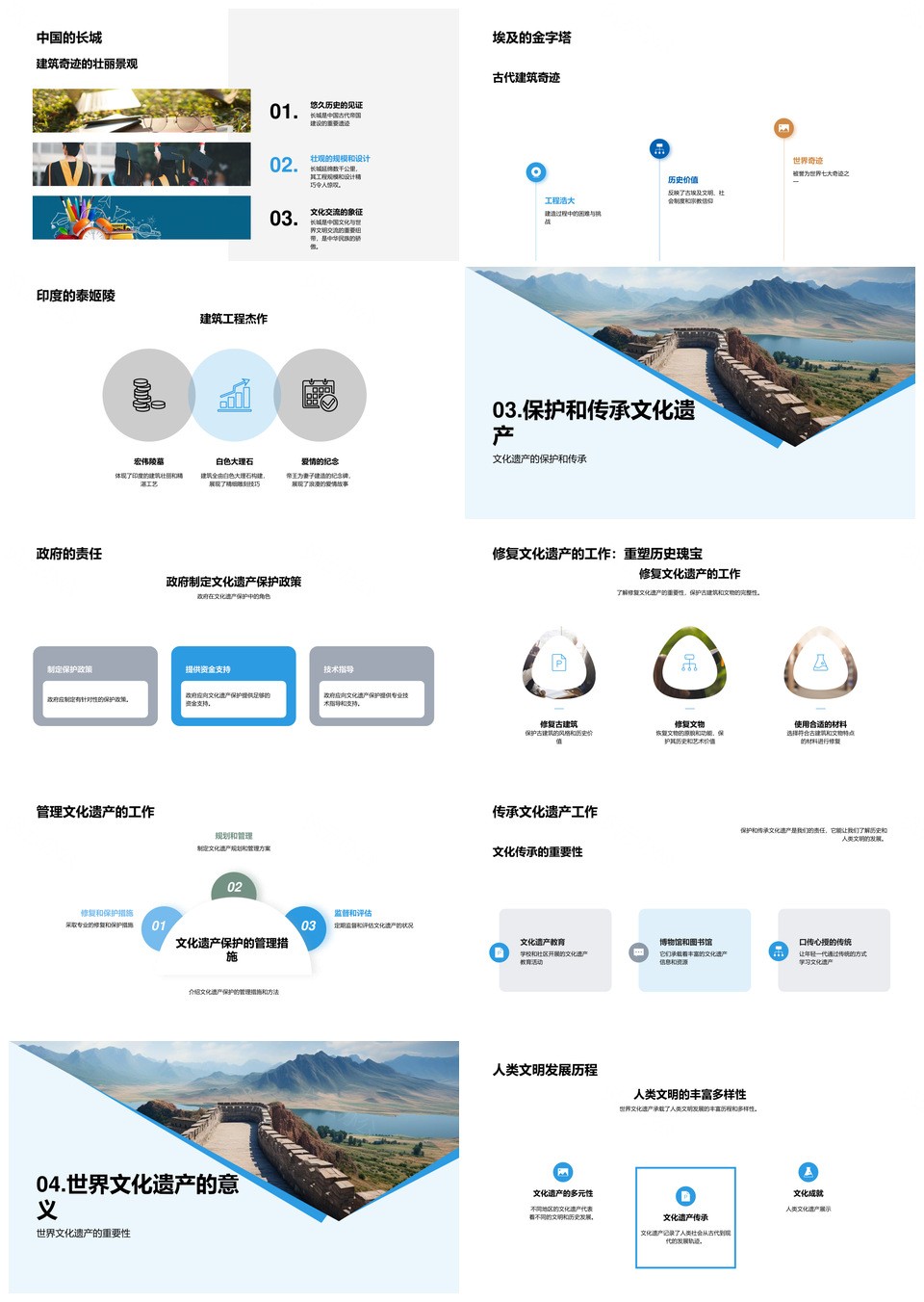 世界文化遗产定义分类长城金字塔泰姬陵政府研究PPT模板推荐
