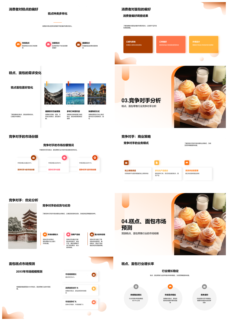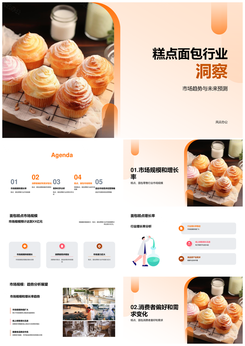 风云办公提供的糕点面包零售市场规模增长消费趋势PPT模板,下载格式为pptx,一共25页,作品中文字及图均可以修改和编辑,图片更改请在作品中右键图片并更换,文字修改请直接点击文字进行修改。
