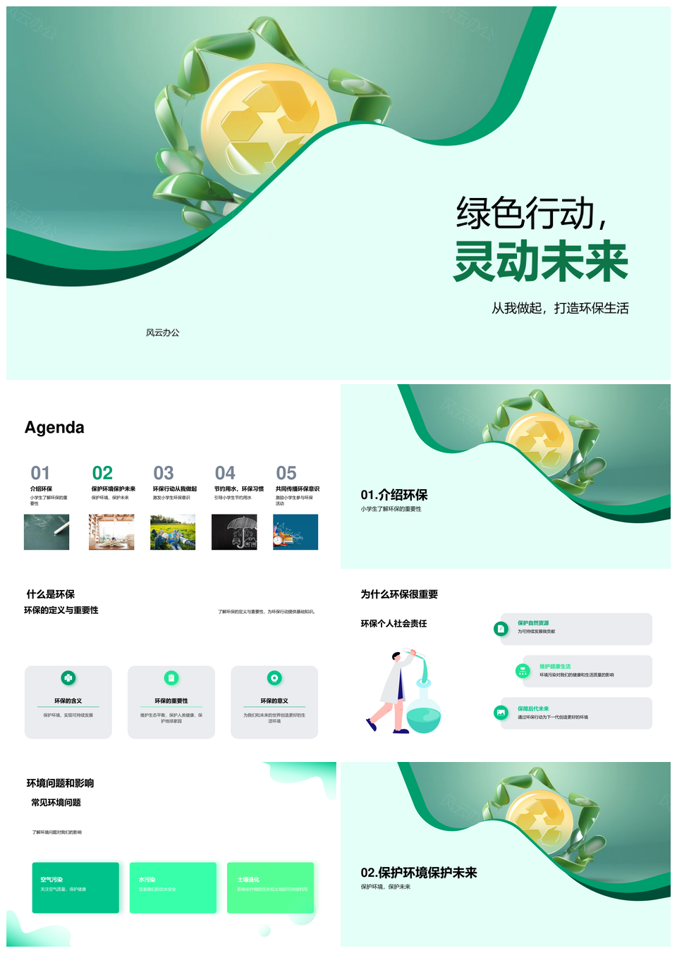 风云办公提供的环保少年护绿行动共创清新未来PPT模板,下载格式为pptx,一共23页,作品中文字及图均可以修改和编辑,图片更改请在作品中右键图片并更换,文字修改请直接点击文字进行修改。