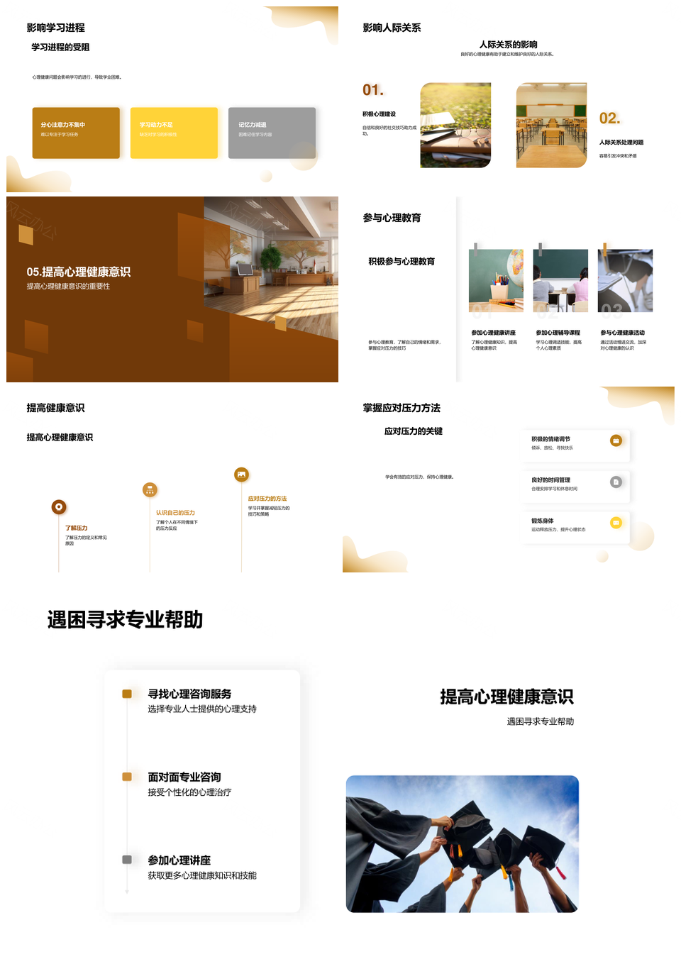 这是一张大学生心理健康压力调适与校园应对PPT模板,包含大学生、心理健康、压力调适、校园应对等主题内容,也可用作大学生心理健康压力调适校园应对、大学生心理健康压力调适、大学生心理健康校园应对、心理健康压力调适校园应对、大学生压力调适校园应对、大学生心理健康、大学生压力调适、大学生校园应对、心理健康压力调适、心理健康校园应对、压力调适校园应对、大学生心理健康压力调适校园、心理健康压力调适校园、大学生心理健康压力调适应对、大学生校园应对压力调适等PPT场景使用。
