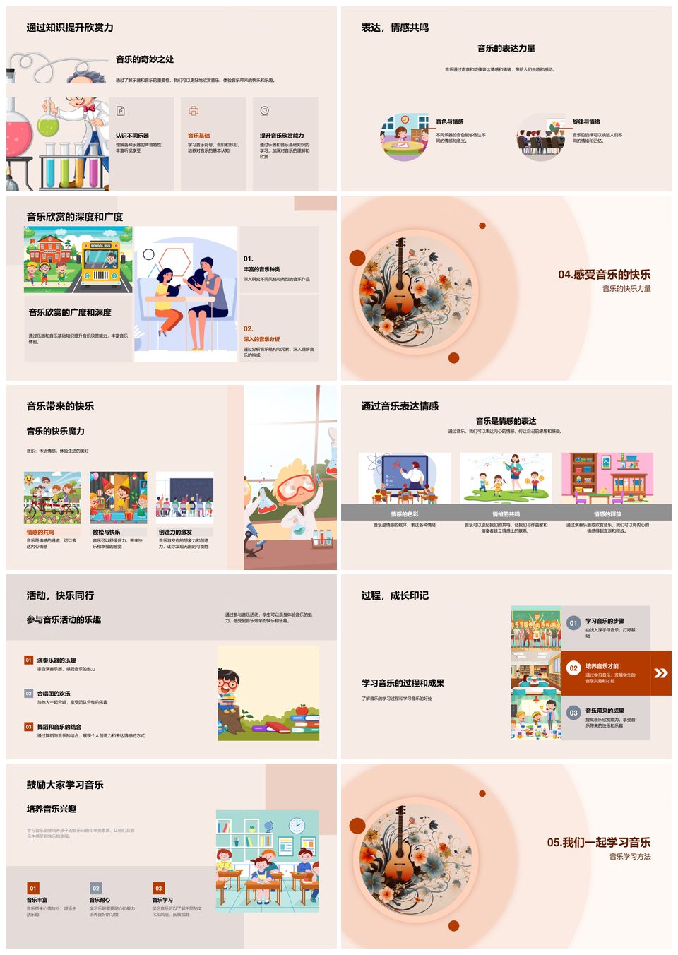 音乐元素乐器分类声效符号与生活影响PPT模板