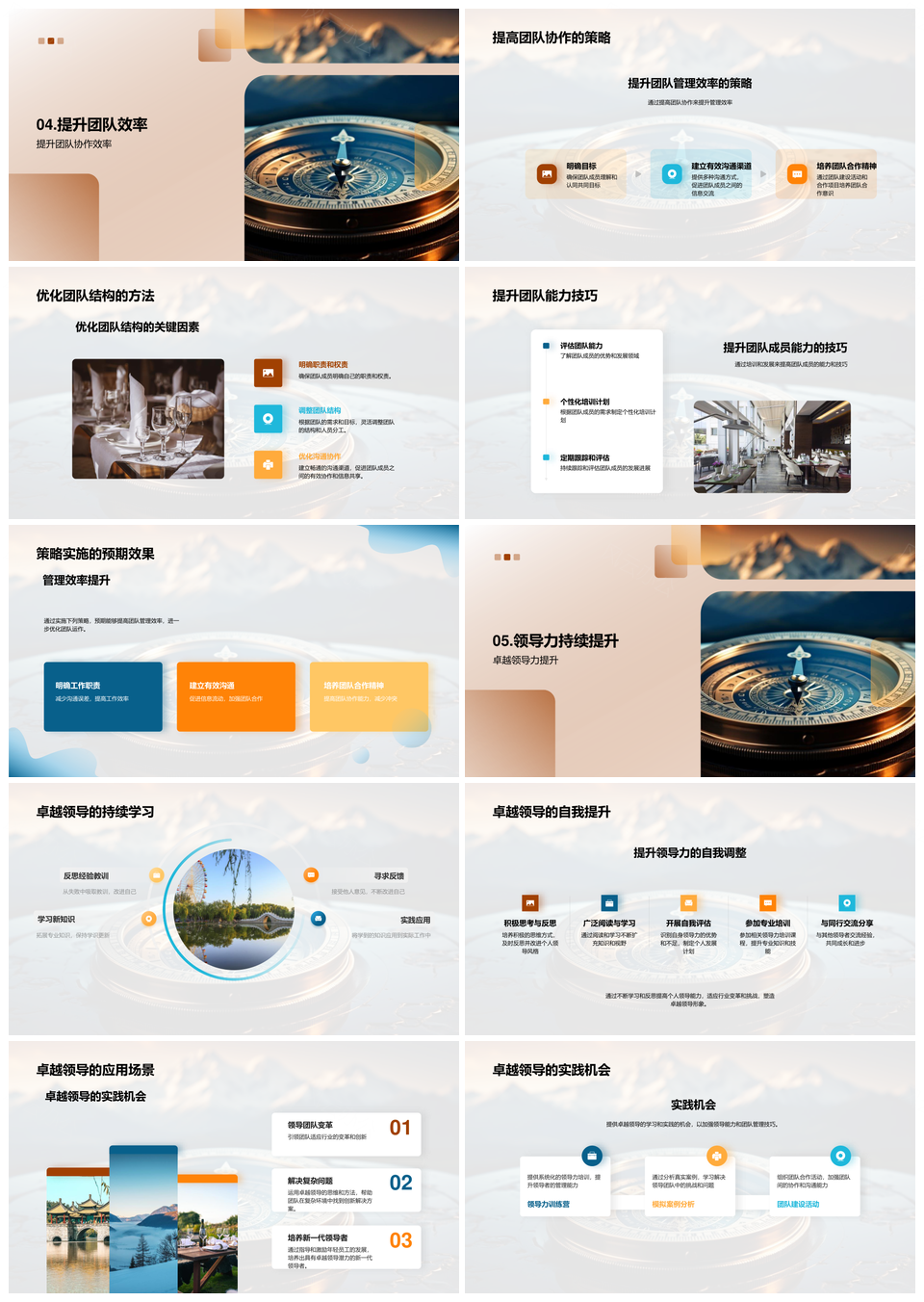 风云办公提供的旅游团队卓越领导力协作管理提升PPT模板,下载格式为pptx,一共29页,作品中文字及图均可以修改和编辑,图片更改请在作品中右键图片并更换,文字修改请直接点击文字进行修改。
