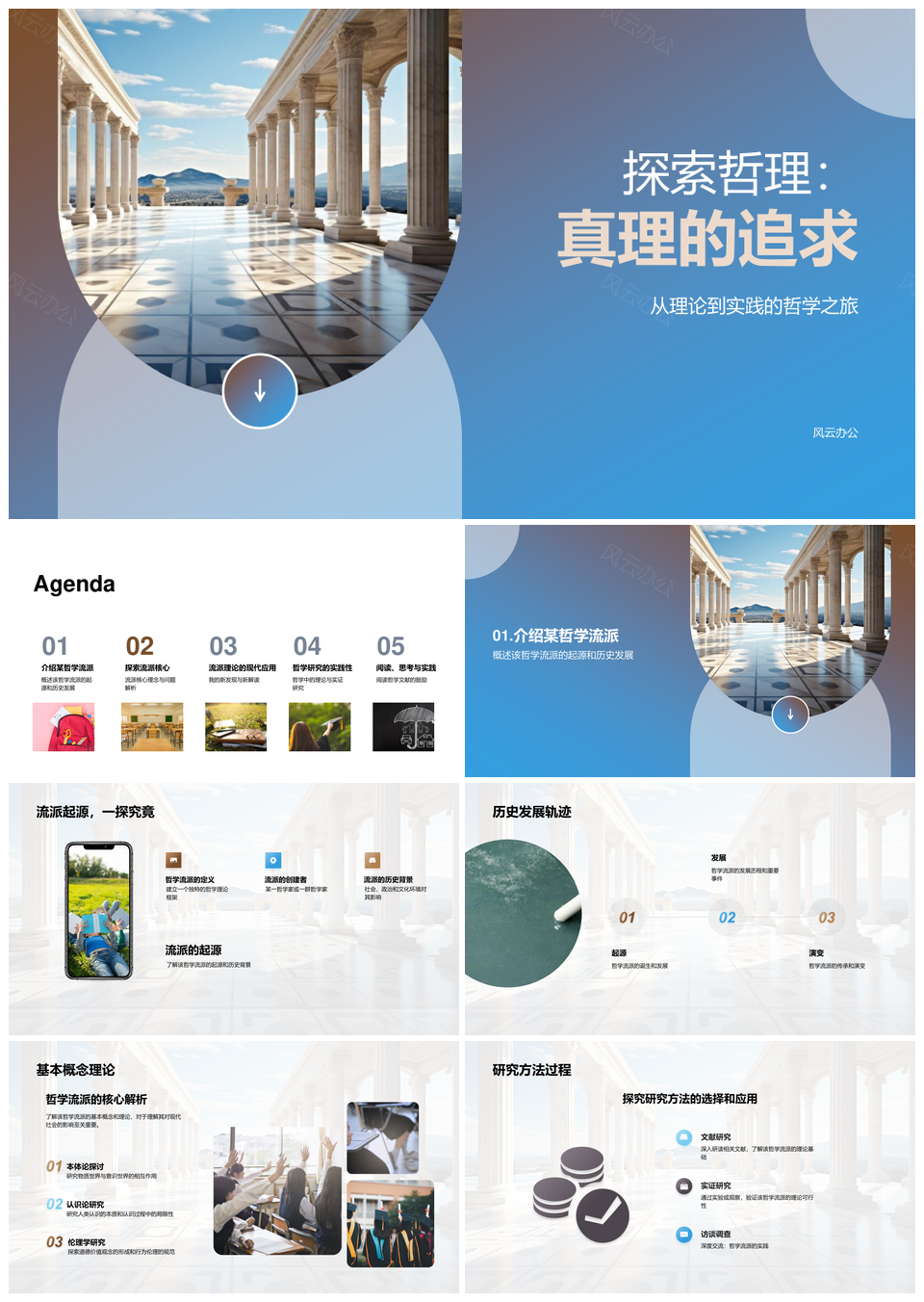 风云办公提供的古希腊哲学流派理论实践真理追求PPT模板,下载格式为pptx,一共26页,作品中文字及图均可以修改和编辑,图片更改请在作品中右键图片并更换,文字修改请直接点击文字进行修改。