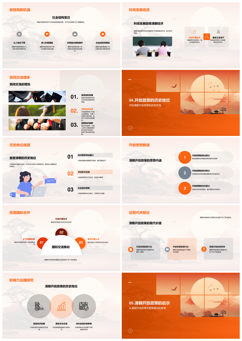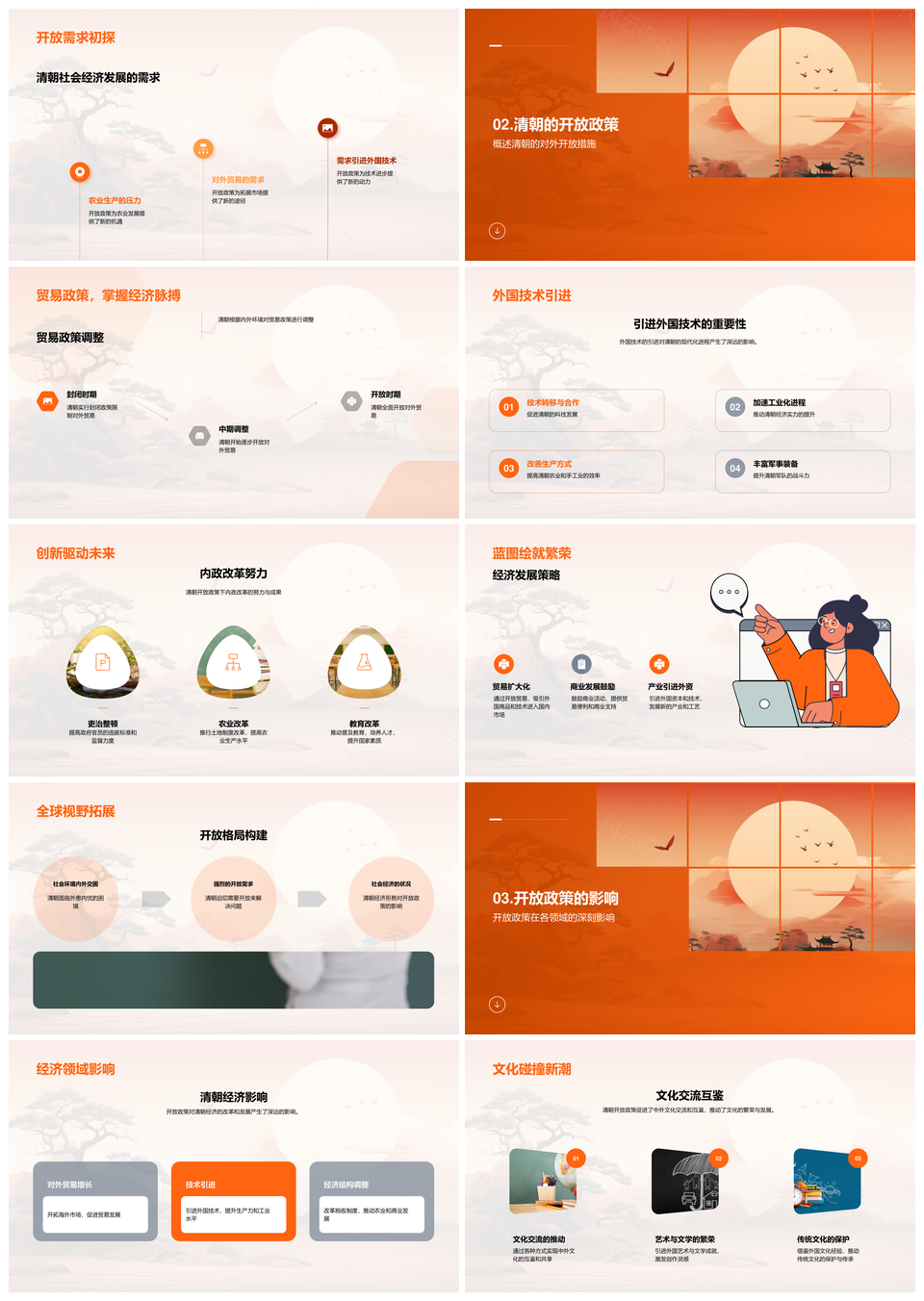 这是一张清朝开放视野外贸技术经济文化影响启示PPT模板,包含开放、视野、外贸、技术、经济、文化、影响、启示等主题内容,也可用作清朝开放视野外贸、开放视野外贸技术、视野外贸技术经济、外贸技术经济文化、技术经济文化影响、经济文化影响启示、开放视野技术经济、外贸技术经济影响、经济文化影响启示、清朝外贸技术经济、开放技术经济文化、视野经济文化启示、外贸技术文化影响、经济文化影响、文化影响启示等PPT场景使用。 风云办公提供的清朝开放视野外贸技术经济文化影响启示PPT模板,下载格式为pptx,一共33页,作品中文字及图均可以修改和编辑,图片更改请在作品中右键图片并更换,文字修改请直接点击文字进行修改。
