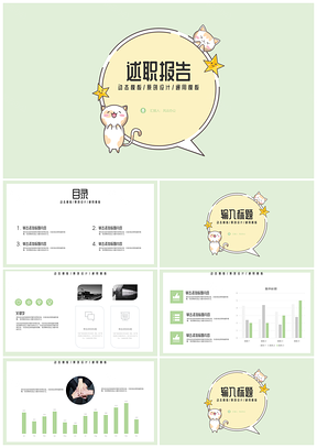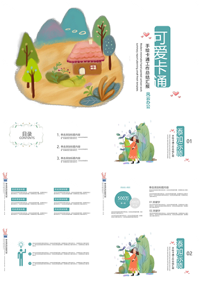 绿色可爱手绘卡通工作总结汇报PPT模板