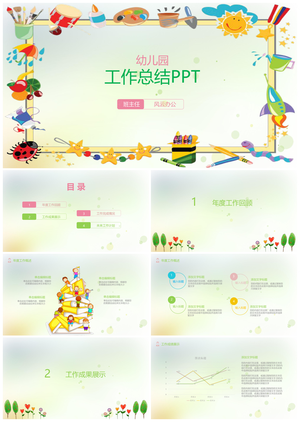 这是一张绿色可爱卡通幼儿园工作总结述职报告PPT模板,包含绿色、可爱、卡通、幼儿园、工作、总结、述职报告、工作总结等主题内容,也可用作绿色、可爱、卡通、幼儿园、工作、总结、述职、报告等PPT场景使用。 风云办公提供的绿色可爱卡通幼儿园工作总结述职报告PPT模板,下载格式为pptx,一共14页,作品中文字及图均可以修改和编辑,图片更改请在作品中右键图片并更换,文字修改请直接点击文字进行修改。
