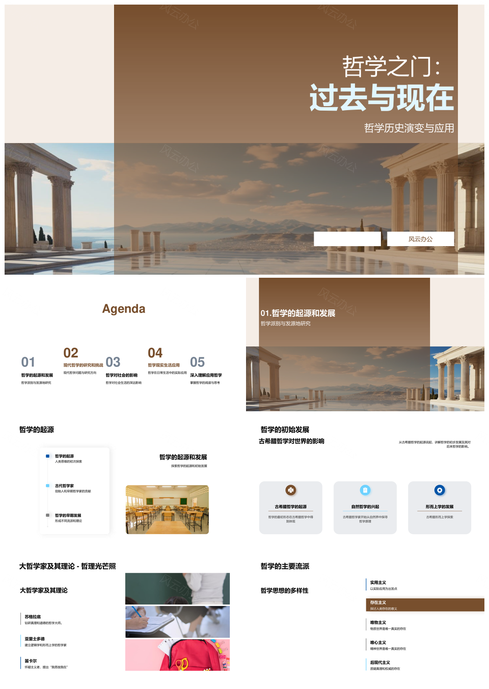 风云办公提供的哲学古今对话科学逻辑与伦理流派PPT模板,下载格式为pptx,一共33页,作品中文字及图均可以修改和编辑,图片更改请在作品中右键图片并更换,文字修改请直接点击文字进行修改。