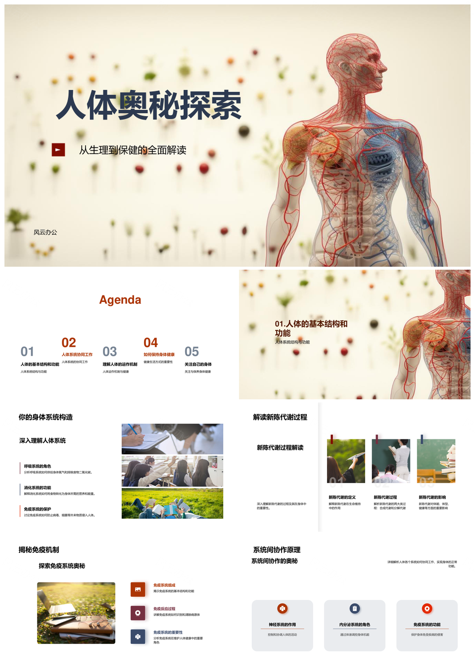 风云办公提供的人体生理系统代谢免疫与食物保健探秘PPT模板,下载格式为pptx,一共33页,作品中文字及图均可以修改和编辑,图片更改请在作品中右键图片并更换,文字修改请直接点击文字进行修改。