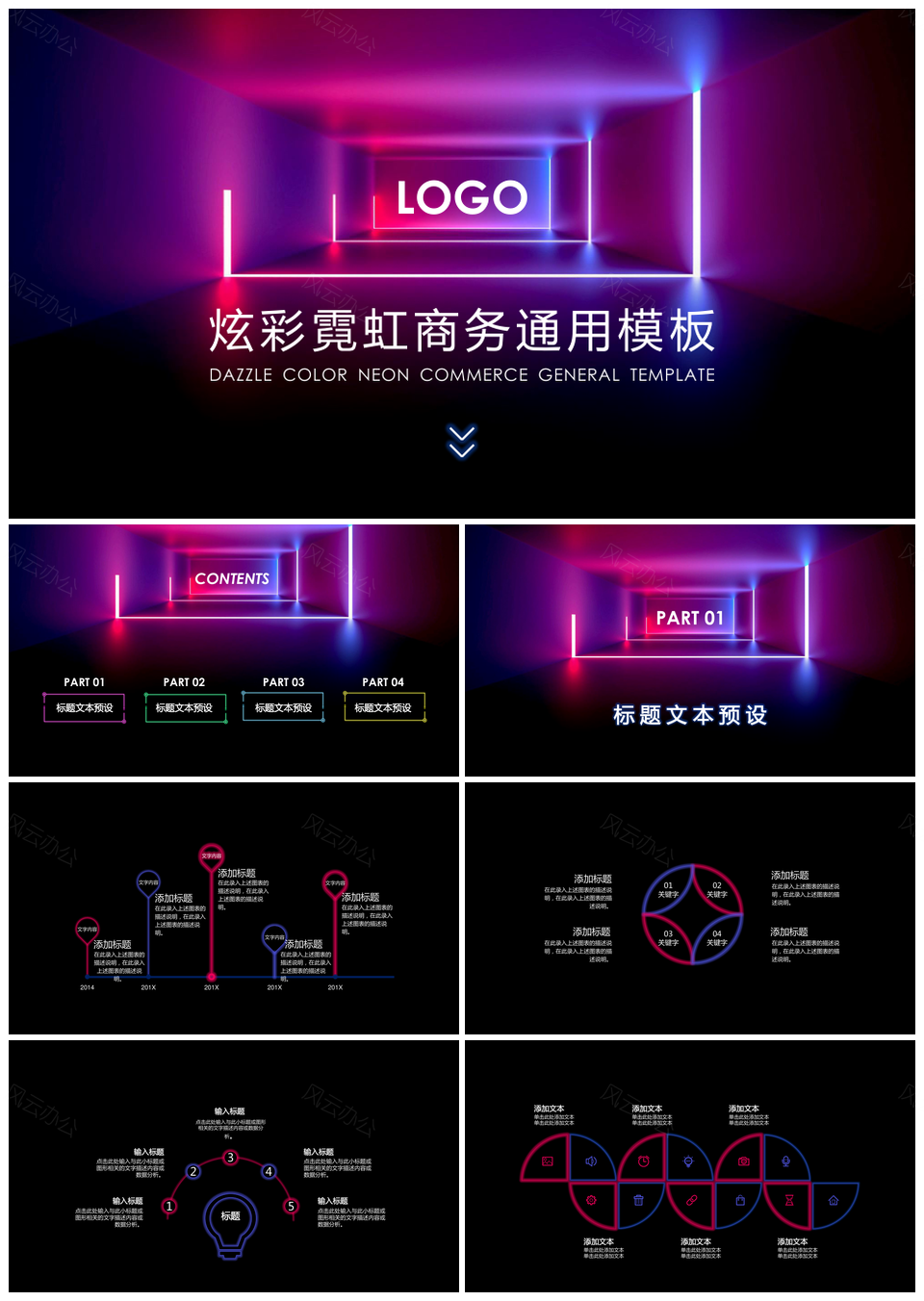 炫彩霓虹商务通用ppt模板通用PPT模板