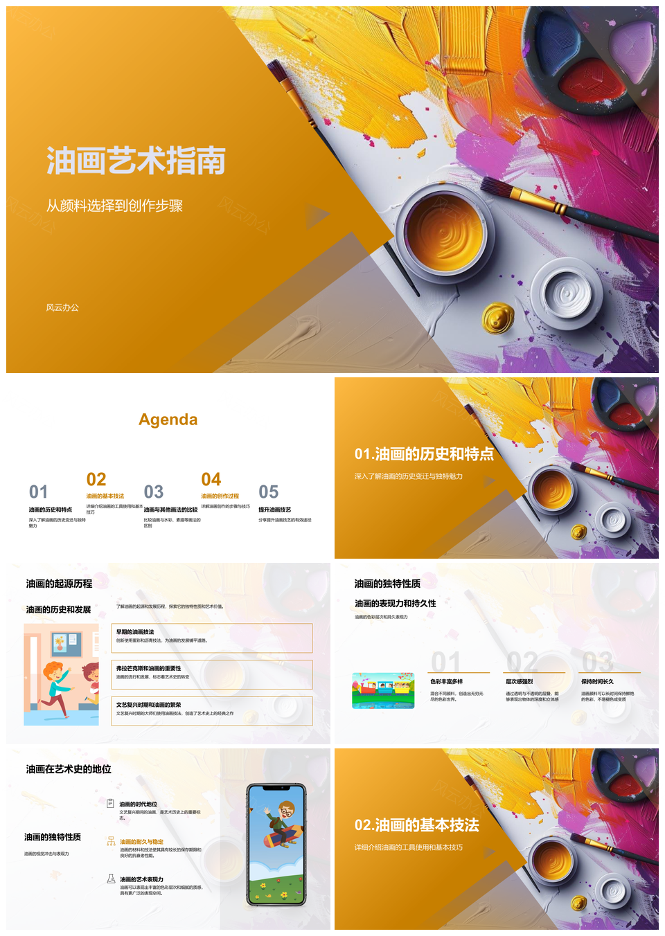 这是一张2025高中油画艺术课起源工具技巧步骤颜料指南PPT模板,包含2025、高中、油画艺术课、起源、工具、技巧、步骤、颜料、指南等主题内容,也可用作2025高中油画艺术课、高中油画艺术课起源、油画艺术课起源工具、艺术课起源工具技巧、起源工具技巧步骤、工具技巧步骤颜料、技巧步骤颜料指南、高中油画起源工具、油画艺术课技巧步骤、艺术课工具技巧颜料、起源步骤颜料指南、2025高中油画技巧、高中艺术课工具步骤、油画起源技巧颜料、艺术课步骤颜料指南等PPT场景使用。 风云办公提供的2025高中油画艺术课起源工具技巧步骤颜料指南PPT模板,下载格式为pptx,一共24页,作品中文字及图均可以修改和编辑,图片更改请在作品中右键图片并更换,文字修改请直接点击文字进行修改。