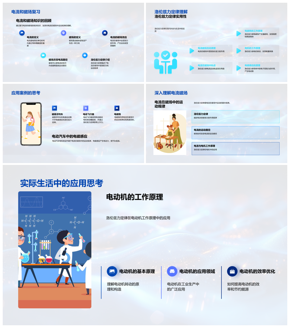 洛伦兹力定律电流磁场高中物理电机应用教学PPT模板推荐